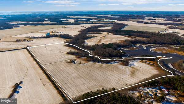 Discover one of Talbot County's rare farms that combines productive farmland, waterfront, and exceptional recreational opportunities. This 105.72-acre agricultural property features approximately 80+/- acres of tillable ground and is well suited for continued farming, income production, or long-term land investment. The open farmland is framed by wooded perimeter lines with a mixture of mature hardwoods and softwoods, including pine and oak, providing privacy, scenic beauty, and excellent wildlife habitat. The property is zoned agricultural, offering flexibility for farming, recreation, or investment use. The tillable acreage carries an overall NCCPI rating of approximately 57.3, indicating solid, productive ground suitable for row crops, small grains, and conservation programs. The farm boasts over 2,500 feet of water frontage on Miles Creek, offering excellent duck and goose hunting opportunities. The property is located on a known migratory flyway for ducks and geese along the Chesapeake Bay, making it a proven waterfowl destination. A network of trails through the wooded areas leads to a cleared waterfront area on Miles Creek featuring a dock and picnic table, ideal for family activities, swimming, and fishing. A small point along the creek includes a strategically placed booby blind, positioned for effective duck and goose hunting. Additional amenities include multiple duck blinds on Miles Creek and a goose pit. The historic two-story farmhouse, dating to the early 1900s, offers five bedrooms and one full bathroom and features a new roof and siding. Beginning with the main floor, the home offers a large living room, dining room, kitchen, and the first of five bedrooms. The second floor includes four large bedrooms and a full bath. The residence is accessed by a private driveway off Saulsbury Road, providing convenient access while maintaining a high level of privacy. A small shed next to the home provides additional storage. This property is income-producing, with revenue potential from farming operations, CRP enrollment, and hunting leases, making it a versatile investment opportunity, productive farm, or private recreational retreat with waterfront access. Property is being offered through a sealed bid process. All bids must be submitted by February 26th at 5PM. Bids will be reviewed after the submission deadline. Seller will not respond to offers prior to that time.