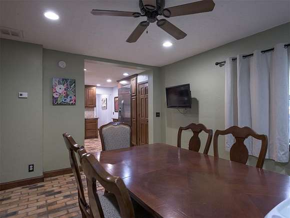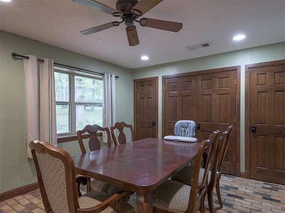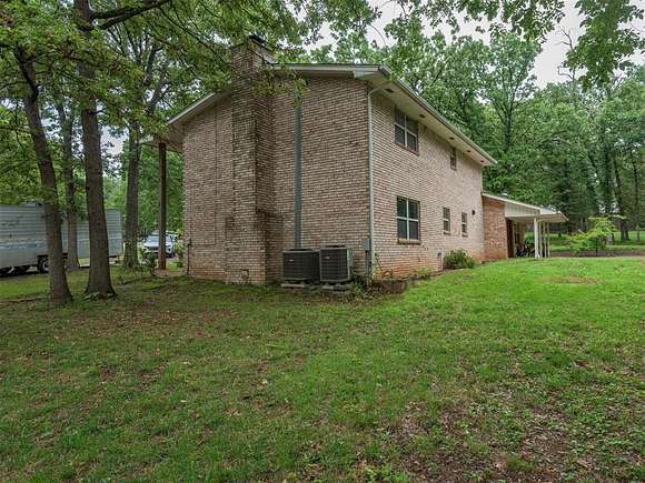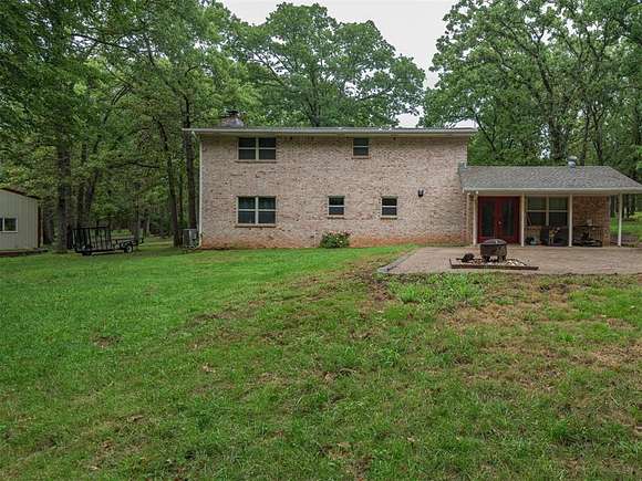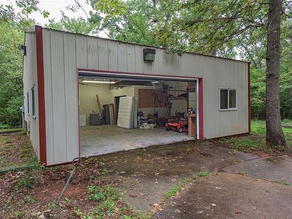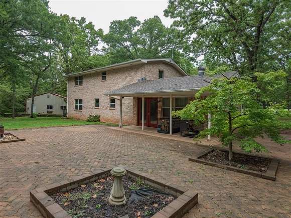 Country Living at Its Finest - Discover your dream home nestled on nearly 4+/- acres in the heart of Norman. This beautiful colonial-style residence offers the perfect blend of luxury and tranquility. Roof replaced in July of 2025! Spacious Living Areas: Enjoy the grandeur of the open-concept living room, featuring a stunning stacked stone fireplace and brick flooring for a touch of rustic charm. The high-end kitchen boasts stainless steel appliances, granite countertops, and custom cabinetry, making it a chef's dream. A downstairs guest bedroom and full bathroom provide convenient accommodations for visitors. Upstairs offers 2 bedrooms and a spacious bathroom with double sinks and a large walk-in shower, and plenty of closet space. Outdoor Entertaining: The brick patio with a fire pit is ideal for entertaining guests while enjoying the serene views of the oak trees and a creek running through back of property. A generous 30x30 detached two-car garage adds extra convenience and storage space. This exceptional property offers the perfect combination of comfort, style, and natural beauty.