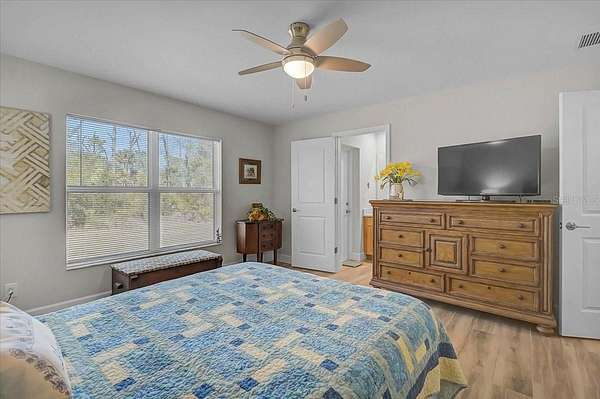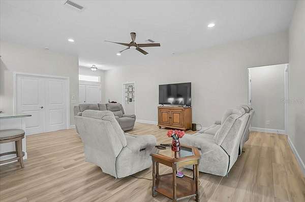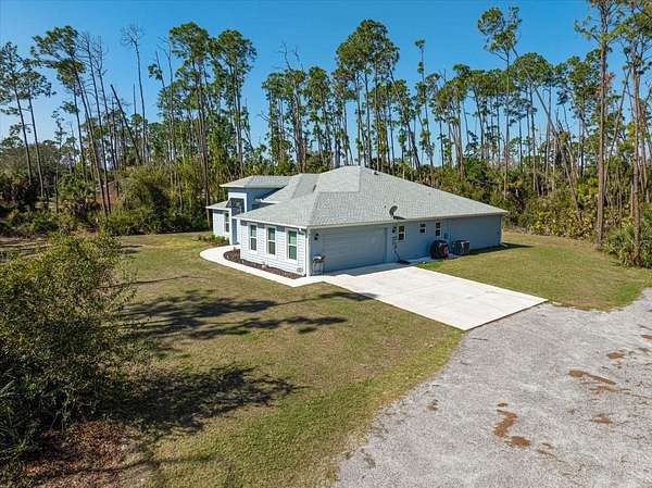Beautifully constructed Tenbusch built home offering quality craftsmanship and energy efficient design throughout. Built with durability and performance in mind, this home features PGT low-e insulated impact windows and sliding glass doors, a closed attic insulation system with Icynene spray foam, and R-matte insulation board on exterior block walls for superior efficiency. The roof system includes GAF shingles, Zip-Ply roof sheathing, and engineered trusses for long lasting structural integrity. Inside, you'll find wood plank tile throughout, solid stone countertops, and a thoughtfully designed layout featuring a spacious den, four bedrooms, and three full bathrooms. Situated on 2.6 acres with city water, this property offers the perfect blend of privacy, space, and modern construction quality.