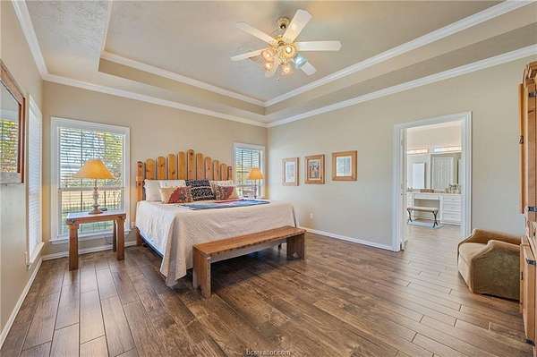 Country living with city convenience! This custom built 3 bed 2.5 bath home is situated on 3.5 acres at the end of a cul-de-sac. With 3 stables, a wash rack, coral, tack room and barn already in place, it is set up for horse enthusiasts or 4H/FFA projects. Upon entering the living area, you are greeted by a wall of windows overlooking the back of the property and a cozy fireplace. The oversized kitchen is an entertainers dream as it connects to the formal dining and breakfast nook and boasts a gas cooktop, built in oven, island and abundant cabinet and counter space. The primary suite is at the rear of the home and offers his and her closets and vanities, a large soaking tub and a walk in shower. The other bedrooms are oversized and share a jack and jill bath. Need to work from home? Inside the garage is a heated/cooled office/craft space or you can utilize the built in desk just off the kitchen. The loft in the barn has also been converted into office space and has a window unit for temperature control. Outdoors, the owners have planted fruit trees and gardened for the last 25 years. Wisteria will fill the air in the spring and red seedless table grapes will grow on the trellis. There is a small green house and rain water harvesting system that conveys. Chickens can call the coop home and you can enjoy evenings under the pergola on the deck or at the fire pit. Park your RV, boat or trailers under the covered parking area complete with electric. Rare find in the heart of CS!