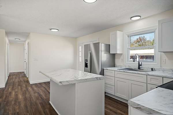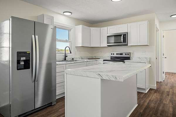 UNRESTRICTED acres, just outside Smithville city limits. This all-brick home sits on newly surveyed, 4.42 offering space, privacy, and endless possibilities. Step inside to find modern updates, including new plumbing, a full breaker system upgrade, new flooring, and stylish finishes from top to bottom. New modern kitchen with stainless steel appliances, drainboard sink, soft close drawers and cabinets and a large island providing extra cabinet space, counter top and eating area.