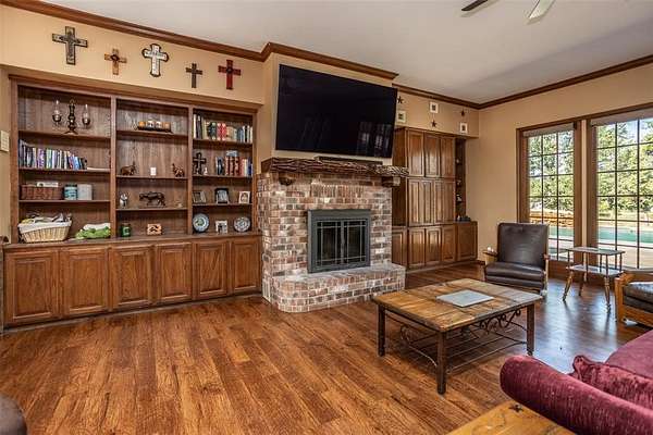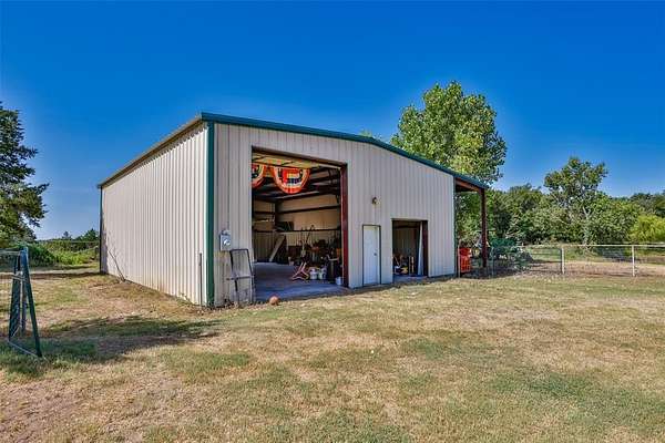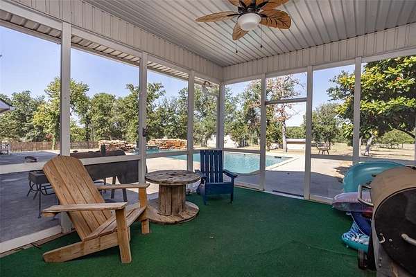 Fall in love with this updated home on 6.59 acres dotted with trees! Bring your RV, boat or ATVs to the 40x50 shop. Enjoy fresh eggs from your chicken coop and cool off or swim laps in the large pool with serene waterfalls. Located on a quiet no-through road and less than 10 miles to Gainesville, this 4-bedroom, 2.5 bath home is perfect for family or frequent guests. The huge living area welcomes you with a wall of windows overlooking the pool and majestic trees. Hardwood floors add style and elegance. A large fireplace draws you to the comfy living room. A remodeled kitchen with two ovens, wine fridge, and spacious bar area all create a natural setting for parties and family time. Enjoy coffee on the screened-in porch before starting the day. The large primary bathroom has a luxurious bath with a soaking tub and walk-in shower. Enjoy wildlife around the pond or bring a horse or 4-H project. Spend evenings walking the property and enjoying the space you've earned. Take a look today!