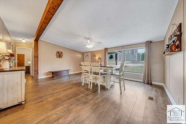Escape to your own private retreat with this beautifully updated 3-bedroom, 2-bath home nestled on over 5 secluded acres—privacy at its best! This property offers the perfect blend of comfort and tranquility, complete with a storage building, shed, and two spacious decks ideal for relaxing or entertaining while enjoying the peaceful surroundings. Inside, you'll find a semi-open floor plan with numerous updates throughout, including a newly updated kitchen, fresh paint, new vinyl flooring, and renovated bathrooms. Stay cozy on cooler days with the inviting propane fireplace. The primary suite is thoughtfully positioned on one end of the home, offering a private retreat away from the additional bedrooms. The living area flows seamlessly to the back deck and fenced yard, perfect for pets or outdoor gatherings. An added addition expands the home's functionality, featuring a den area and extra bedroom; ideal for guests, a home office, or flex space. If you're looking for space, privacy, and modern updates in a serene setting, this one is a must-see. Schedule your showing today! Lot dimensions estimated. All information taken from tax card and seller. Buyer and buyer's agent to verify all information.