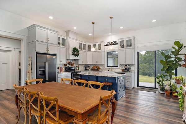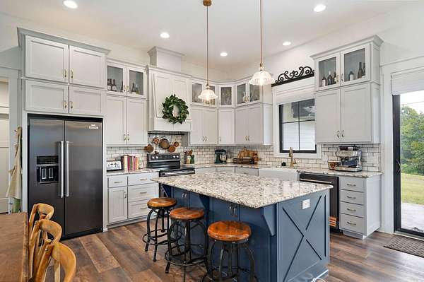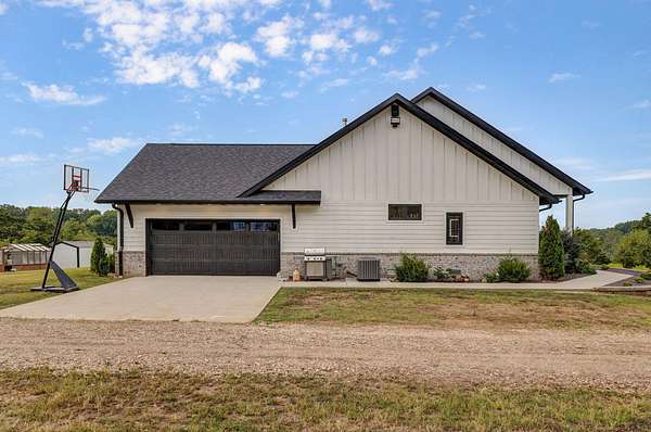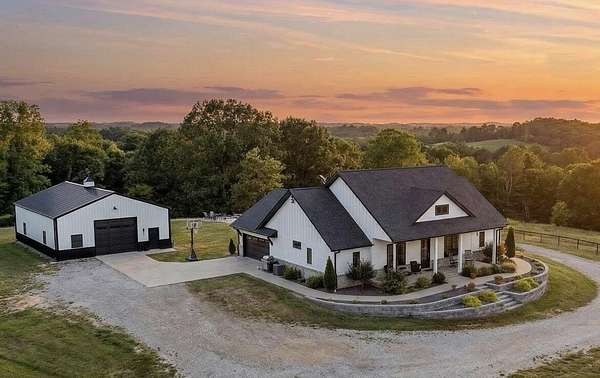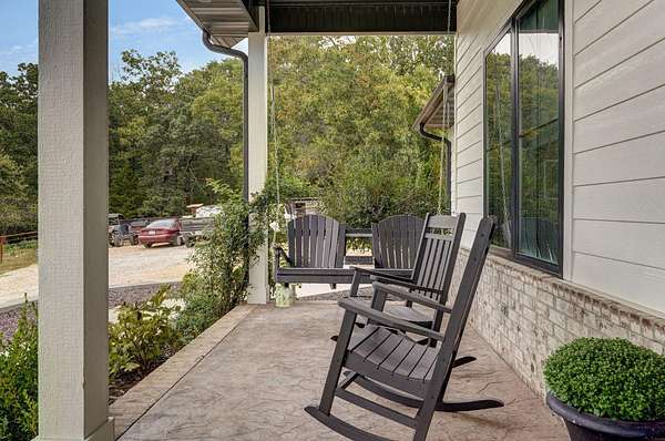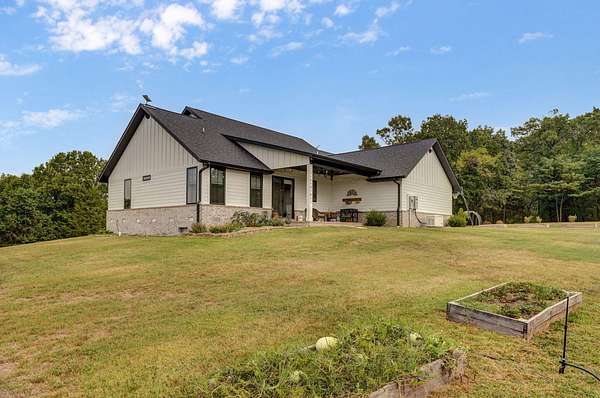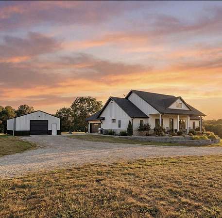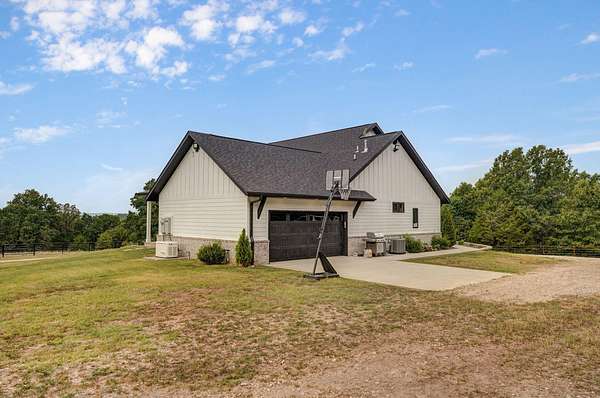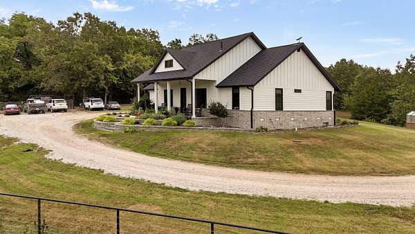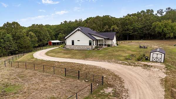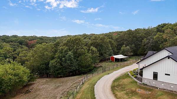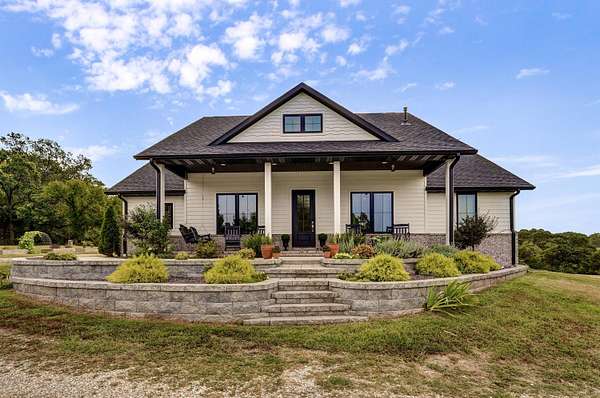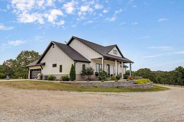 Rare opportunity to own a one-of-a-kind, secluded property on 60.6 acres in the highly sought-after Nixa School District while enjoying low Stone County taxes. This stunning estate features a 2022 custom-built, single-level ranch home designed for comfort and modern country living, surrounded by the natural beauty of the Ozarks with rolling hills, mature trees, creeks, and panoramic views.Start your mornings on the back patio with breathtaking sunrise views, then wind down in the evenings watching the sunset from the front porch. The home's 10-foot ceilings and open layout create a spacious, inviting feel that's perfect for both everyday living and entertaining.The land is fully set up for livestock or hobby farming, with pipe-fenced pastures, multiple horse stalls, loafing sheds, and a newly fenced chicken coop. The iron front gate, worth thousands, adds both security and a grand entrance to the property. A picturesque old barn sits next to a serene pond, adding charm and character, while abundant wildlife makes this a hunter's paradise. Endless trails wind throughout the property, providing space for riding, hiking, and exploring.Located just 7 miles from Nixa and minutes from river rafting, shopping, and dining, this property offers the perfect balance of privacy and convenience. The 60.6 acres can be subdivided, providing flexible options for future development, investment, or creating space for additional family homes.For even more opportunity, an additional 20-acre neighboring property with a 3-bedroom barndominium and 40x60 shop is also available, bringing the total to 80.6 acres.