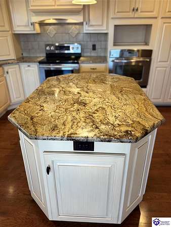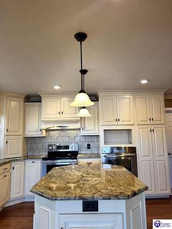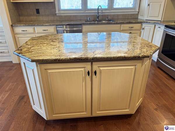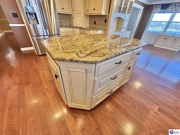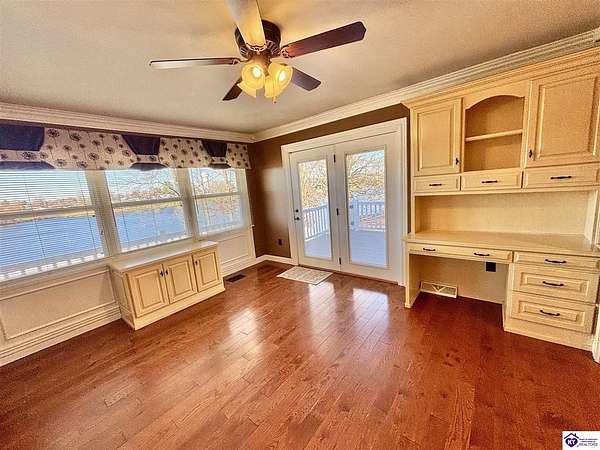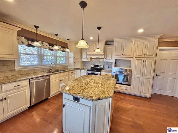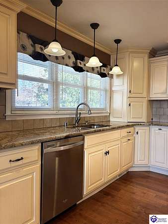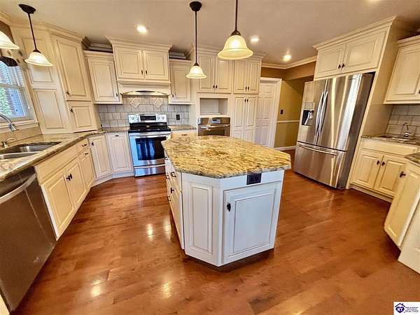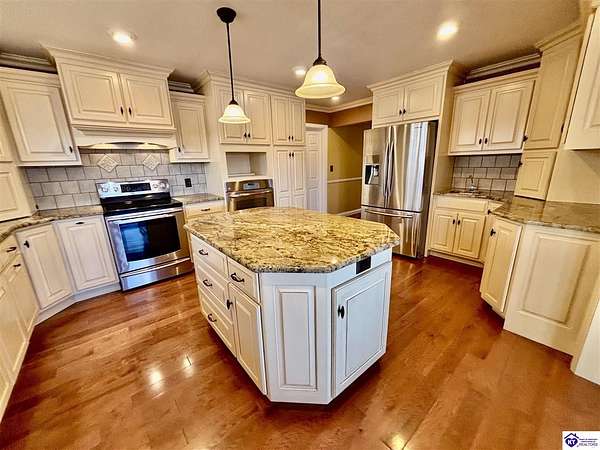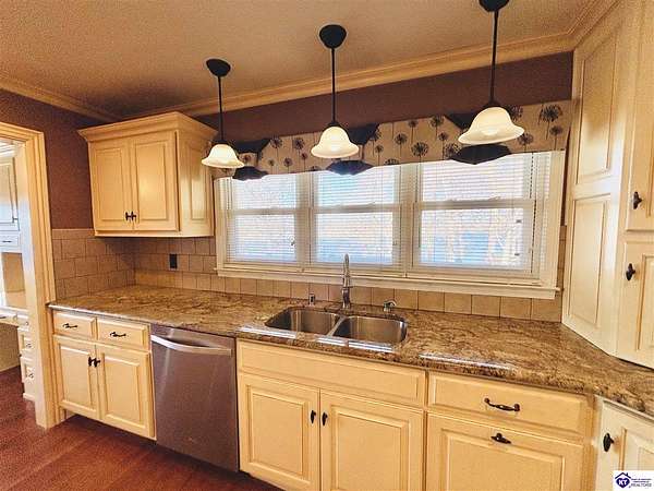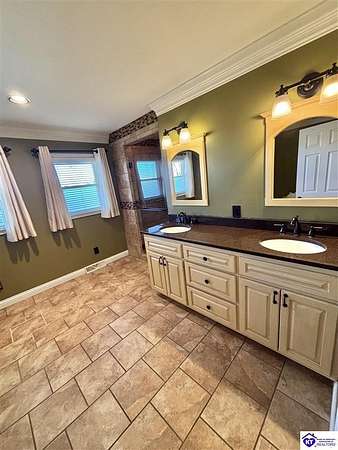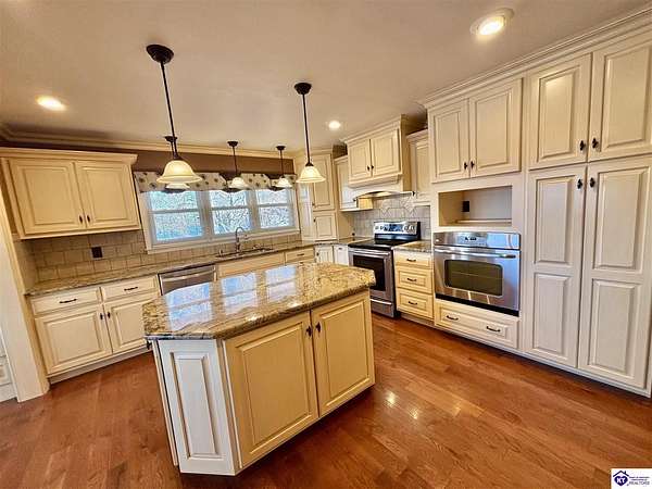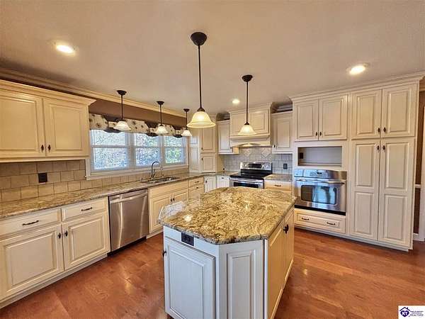 Magnificent lot! This exceptional property awaits a lucky buyer. There are numerous attributes to appreciate about this home. Situated on one of the best lots in Campbellsville, overlooking the city lake, this 2.3-acre property boasts breathtaking views. The residence itself is a masterclass in luxury, featuring hardwood floors, crown molding, tile, custom cabinetry, and a kitchen equipped with stainless steel appliances. Sunsets are AMAZING! The primary suite comprises two rooms, one of which could be converted into a spacious walk-in closet, accompanied by a large primary bathroom, complete with a shower, jetted tub, beautiful tile floor, and a linen closet. The kitchen is truly exceptional, showcasing stunning custom work and beautiful granite. Conveniently located in the heart of Kentucky, this impressive property offers a unique blend of attributes, capturing the essence of the state. The floor plan is impressive, with four bedrooms and 2.5 bathrooms on the main floor. The kitchen features an abundance of custom cabinetry, leading to a dining area with phenomenal views. The den boasts a gorgeous fireplace and stunning views, while the formal dining/living room features another fireplace. The property also includes two separate attached garage areas, providing ample storage and space for six cars, as well as a side gravel area for additional parking. The basement is equipped with a finished family room/den area, a half bath, and a pool area that could be converted into a kitchen or bar. The possibilities are endless in the basement, which also features a potential bedroom. One of the highlights of the property is the ability to walk out from the basement into a covered patio, leading to the magnificent pool area. This space is perfect for relaxation, entertainment, or leisure activities. Perfect deck fromkitchen is spacious, offering surrounding views of the city lake. The basement provides ample storage and the potential for further development. The property comes equipped with a water filter, filtration system, and security system, generator auto as well as an underground fence. The pool area is truly magnificent, making this property a rare find. The den with a gorgeous fireplace and amazing views. also, a formal dining/living room with a fireplace. yes two separate garage attached areas with tons of storage and room for six cars. Side gravel area if you need extra parking with beautiful curb appeal. The basement has a finished family room/den!