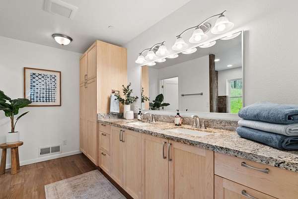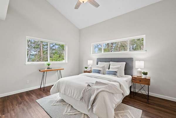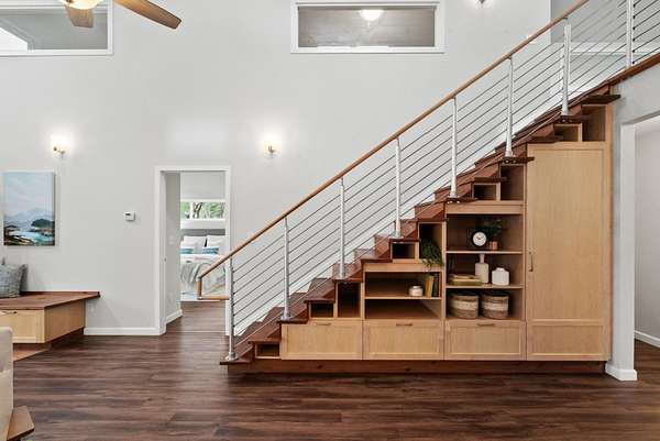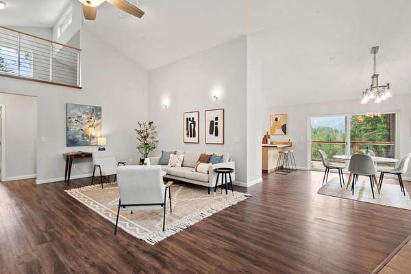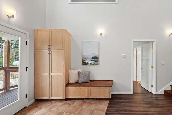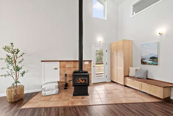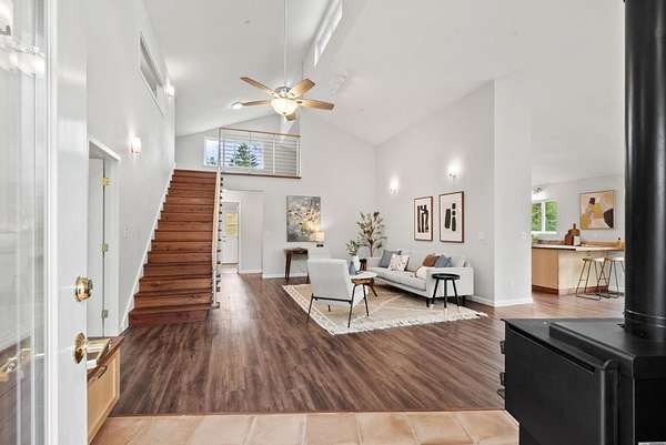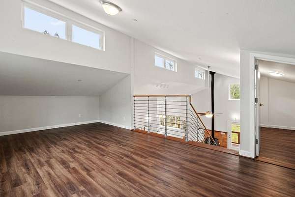 Come see this 2023 custom designed peaceful retreat on 5.5+ sunny acres at the end of a quiet road. Lots of usable land, expansive skies, and privacy. The land is a blank canvas, zoned SU allowing a wide range of uses, including livestock. Inside, the great room impresses with 20-foot vaulted ceilings, a cozy woodstove, central heat, and a striking custom staircase with owner-built cabinetry inspired by Japanese Tansu design. The home lives primarily as a single level, with a versatile 250 sq ft loft and bonus attic. Clerestory windows fill the great room, two bedrooms and the attic with natural light! Every window frames views of sunny hillsides, distant mountains, redwoods, oaks, and a meadow. The kitchen features custom maple cabinetry with soft-close hardware, granite countertops, a butcher block peninsula, and stainless appliances including propane range and hood. The primary suite enjoys sunset views and a spa-like en-suite with dual shower heads, a double-ended claw foot tub, and private commode. Fully functional permitted RV site. South facing solar production reduces power costs. Don't miss the standing-height basement's potential. High-speed internet, and just 10 minutes drive to charming Boulder Creek, +/- 40 minutes to Silicon Valley or Santa Cruz.