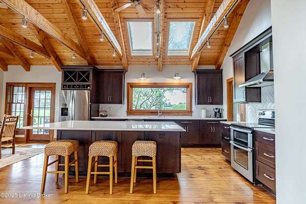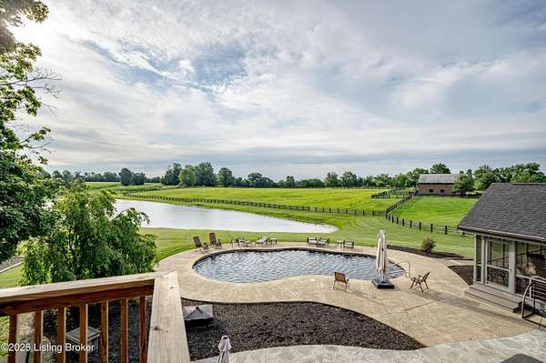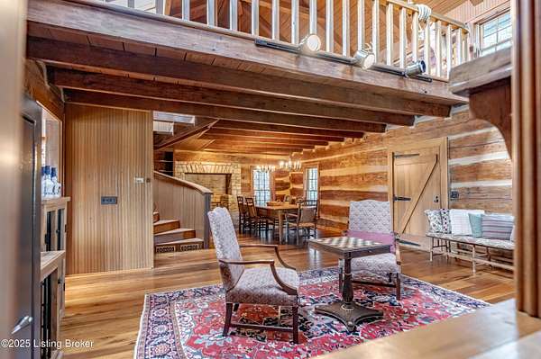 Cabin Chase Farm. One of the well known farms in Shelby County. This property is absolutely stunning, from the long paved driveway back to the 1800's log cabin and the addition around that history with 5 bedrooms and 7 baths. The open floor plan has large vaulted ceilings, a kitchen straight out of a magazine, large windows that look out onto the farm, the inground pool and lake. A first level enclosed patio area is perfect for relaxing with the family after a swim. The primary suite is huge with walk in closet most people dream of and walk in shower in the primary bath. Large bedrooms upstairs and another sunroom office area that over looks the farm. Horse barn with 7 stalls, paddocks and 6 car garage. All on 24 acres. Even an elevator if you don't like the steps . WOW Additional Acreage available with home. See MLS Listing # 1699412