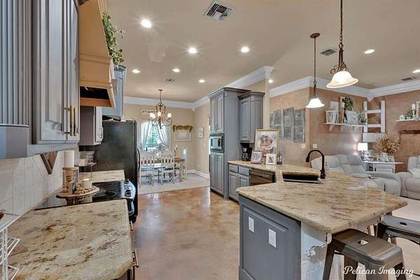 - Decorative Lighting, Eat-In Kitchen, Granite Counters, Open Floorplan, Pantry