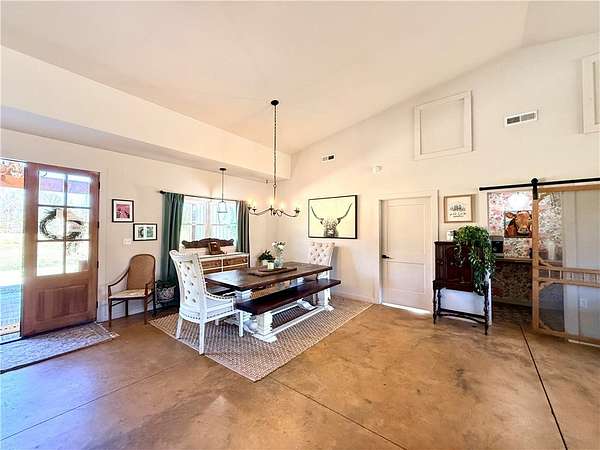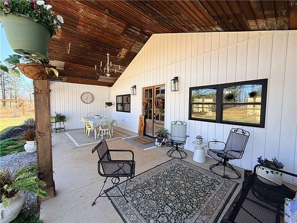 Discover a rare opportunity to own a custom Craftsman-style barndominium on 10 unrestricted acres, offering privacy, versatility, and refined country living. This stunning residence features 5 bedrooms, 3.5 baths, and an open-concept design that seamlessly blends rustic charm with modern sophistication. The heart of the home is an expansive living, dining, and kitchen area, anchored by a gas-log fireplace and enhanced by roll-up garage doors for effortless indoor-outdoor entertaining. The split floor plan ensures ultimate privacy, with a luxurious primary suite boasting an oversized walk-in closet and a spa-inspired bath complete with double vanities, soaking tub, and a dual-head walk-in shower. A laundry room with a utility sink and ample storage space, as well as a private office with exterior entrance add convenience and flexibility. The opposite wing offers four spacious bedrooms, each connected by Jack-and-Jill baths, ideal for family or guests. Additional highlights include: Three-bay attached garage, including oversized door for boat or camper storage. Expansive covered front porch and rear porch with wood-burning fireplace for cozy evenings. Durable concrete flooring throughout, with vinyl in bathrooms for easy care. Close proximity to Stamp Creek Landing on Lake Keowee to enjoy boating, fishing and swimming. Dining, shopping, and medical facilities is a short drive away. This property is more than a home-it's a lifestyle. Whether you're seeking a private retreat, a family compound, or an entertainer's paradise, 411 Sweetwater Club Drive delivers unmatched flexibility and charm.