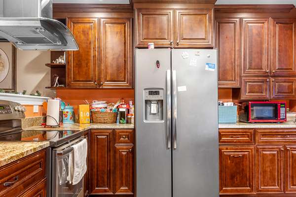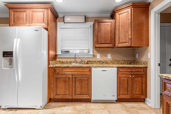 The main living room welcomes you with rich hardwood floors and a fireplace that creates a warm focal point. Its open floor plan leads seamlessly into a spacious kitchen, where a wraparound island, abundant cabinetry, and generous counter space offer the perfect environment for cooking, gathering, and entertaining. The dining area flows naturally to a screened-in back porch that overlooks the quiet, tree-lined backyard--an inviting spot for morning coffee or peaceful evenings outdoors.