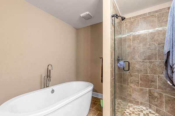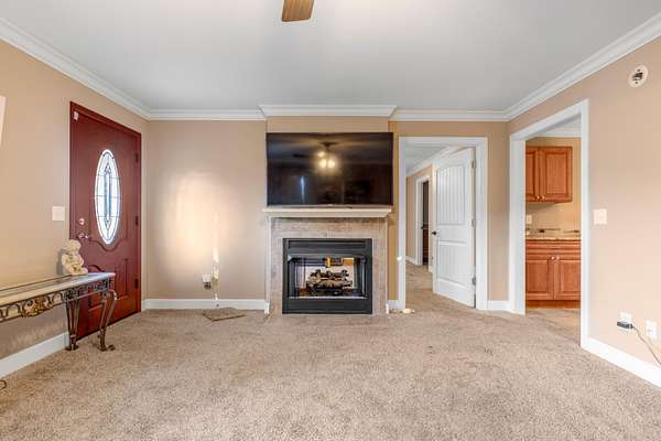 The primary suite provides a private retreat with a soaking tub, a walk-in shower, and a double vanity. Additional bedrooms share a well-appointed full bath, while another bedroom enjoys its own en-suite bathroom, offering flexibility for guests or family members seeking added privacy. The second living room, complete with its own fireplace, provides even more room to spread out and enjoy separate living quarters or recreational space. With two garages and ample parking, the property is well suited for multiple vehicles, hobbies, or storage needs.