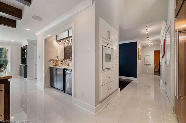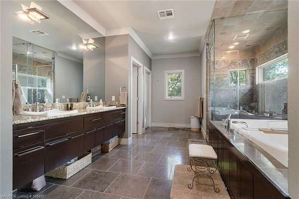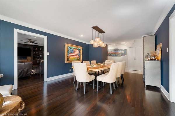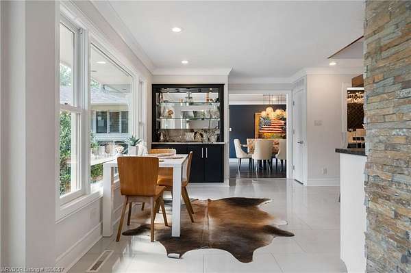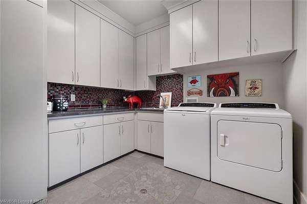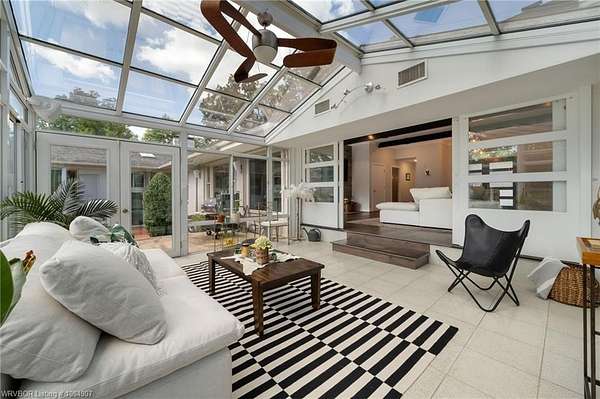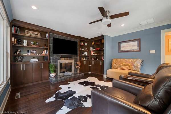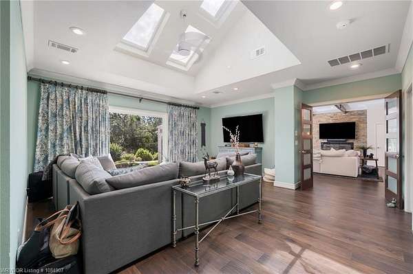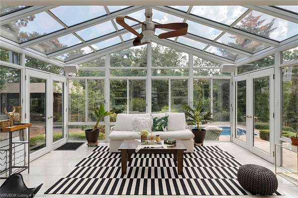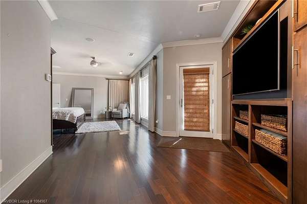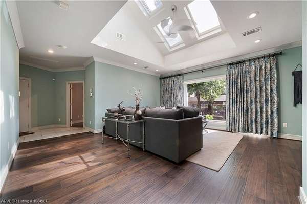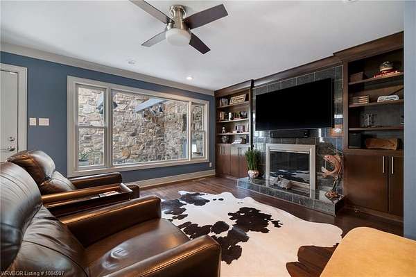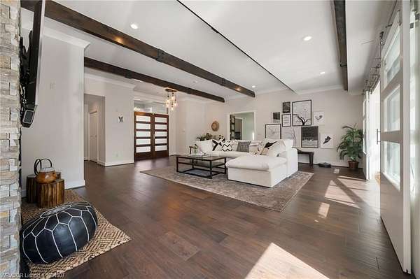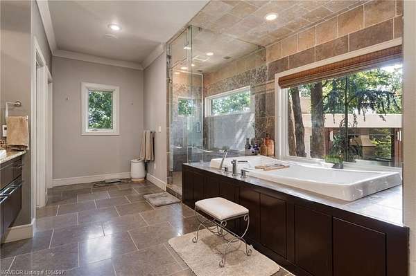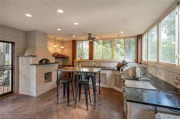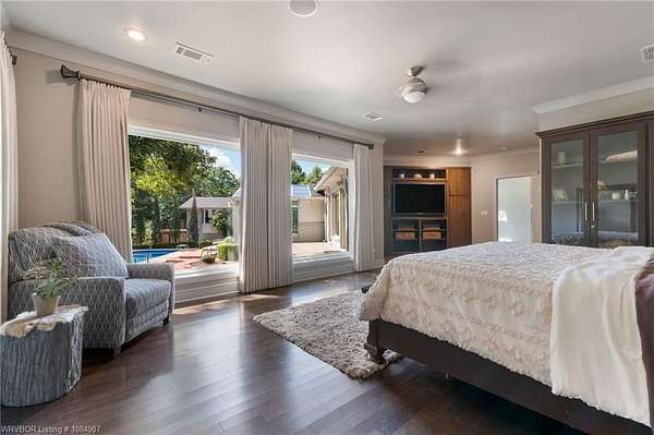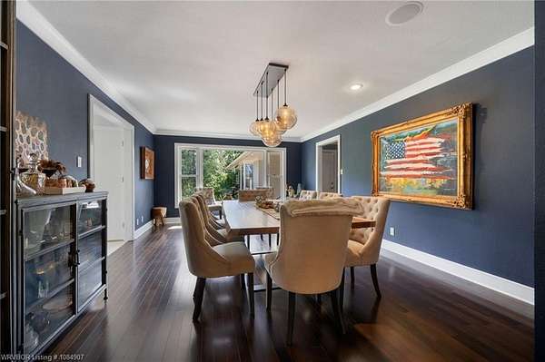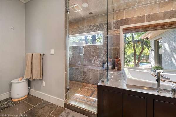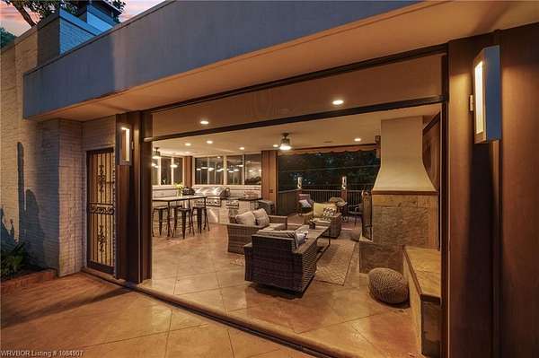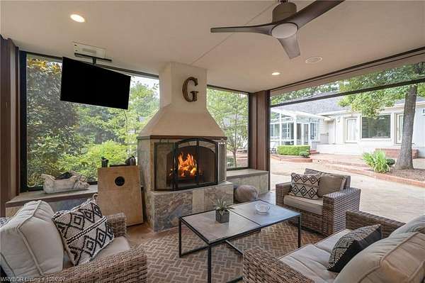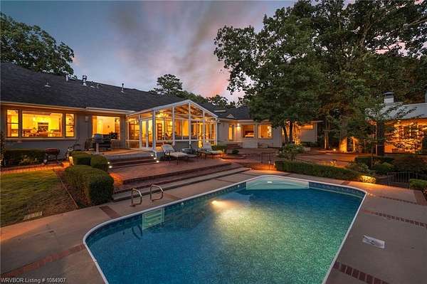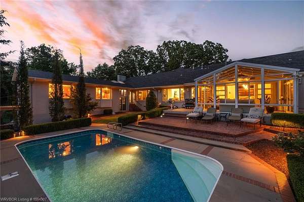 Discover modern luxury in the heart of Fort Smith with this exceptional 4-bedroom, 6-bath contemporary home on 1.8 secluded acres in the prestigious Sebastian Hills neighborhood. Spanning 6,190 sq ft, this residence is designed for both entertaining and comfortable family living. The chef's kitchen features a large island with built-ins, premium appliances, and abundant storage. Three spacious living areas offer flexibility for gatherings or quiet relaxation, while the sunroom fills the home with natural light and serene views. A generous bonus suite includes a kitchen and full bath-perfect for guests, in-laws, or a private studio. Step outside to your own backyard retreat complete with a custom outdoor kitchen, sparkling inground pool, fire pit, and pool house featuring a pizza oven and outdoor fireplace-ideal for entertaining year-round. Additional highlights include a 3-car garage with a custom workshop and extensive storage throughout. Combining privacy, sophistication, and convenience, this one-of-a-kind property offers refined living just minutes from everything Fort Smith has to offer.