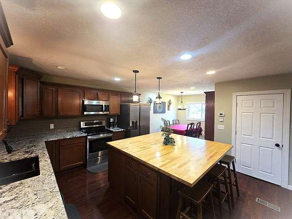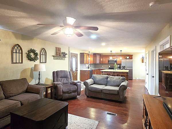 Enjoy peaceful country living on over 16 acres of beautiful rolling hills, with a mix of open land and wooded areas complete with trails--perfect for hunting, exploring, or riding your ATVs and recreational toys. Whether you're looking for privacy, outdoor adventure, or space to roam, this property delivers. A 30' x 40' pole barn provides plenty of room to store your equipment, vehicles, and outdoor toys. The home features 4 bedrooms and 1 bathroom, plus a dedicated office that could easily serve as a fifth bedroom or guest room. The open-concept kitchen, living room, and dining area create a welcoming space ideal for everyday living and entertaining. The spacious basement offers great potential and is ready to be finished to suit your needs--whether you're dreaming of a home gym, recreation room, or additional living space. Conveniently located just minutes from I-69, you'll enjoy the perfect balance of quiet country living with easy access to nearby amenities. Don't miss this opportunity to own acreage, privacy, and versatility all in one property.