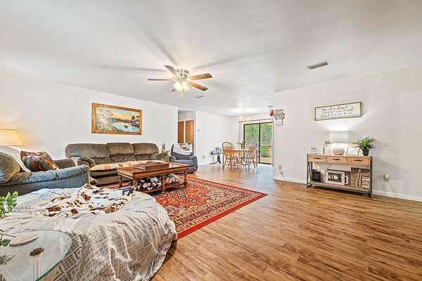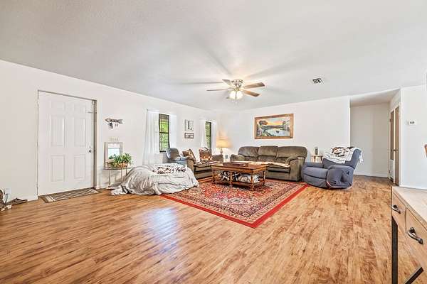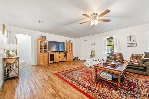 Three Rivers Estates home situated on two lots totaling almost 2 acres, this 2-bedroom, 2-bath concrete block home offers space, privacy, and peace of mind in a desirable river community--this property is not located in a flood zone. The exterior features a brick stucco finish on the front and a fully fenced yard, ideal for pets, gardening, or outdoor enjoyment. Inside, the home features laminate flooring throughout and a functional split plan layout designed for comfortable living. Major updates include a newer roof and updated HVAC system, adding long-term value and efficiency. Step outside to the large rear deck, perfect for relaxing or entertaining while enjoying the spacious surroundings. With plenty of room to expand or enjoy as-is, this property offers the benefits of a river community lifestyle without flood concerns--an excellent opportunity for full-time living or a weekend retreat.