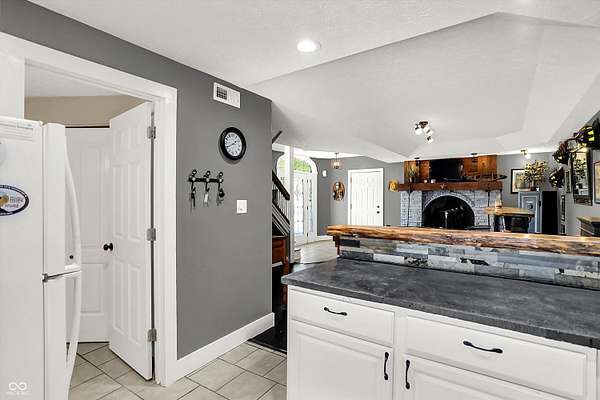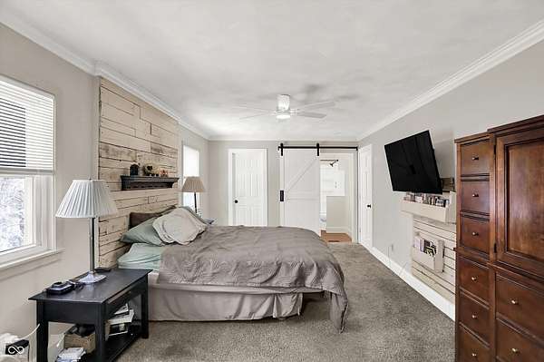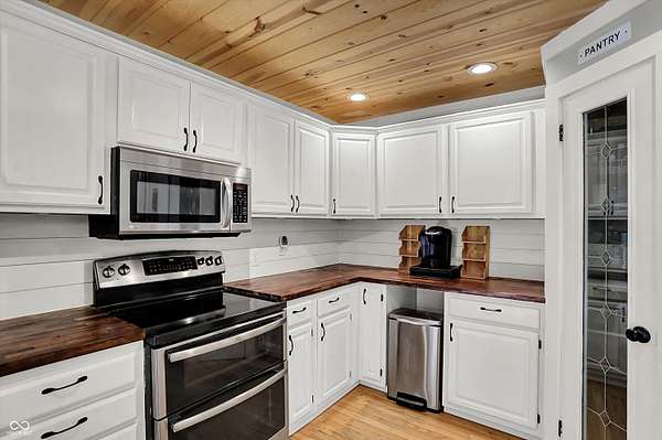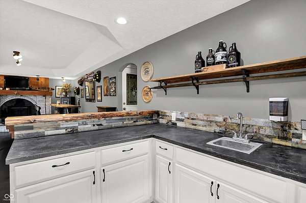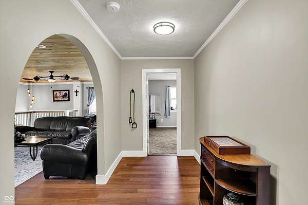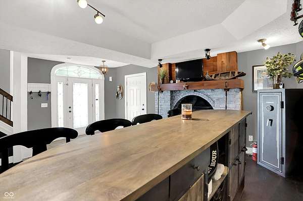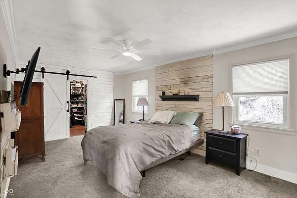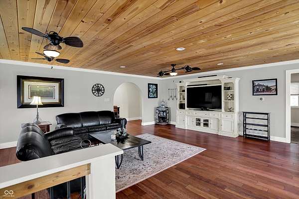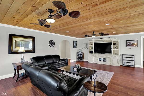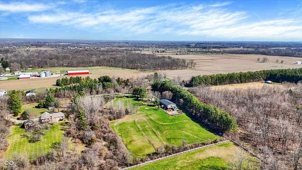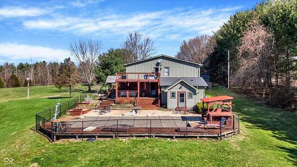 Welcome to this one-of-a-kind 3-bedroom, 2-bathroom retreat nestled on 5.8 private acres in the sought-after Center Grove school district, where nearly every inch has been thoughtfully updated and customized since purchase. The upper level impresses with soaring tongue-and-groove wood ceilings, rich hardwood floors, and an expansive open living and dining area flowing into a beautifully updated kitchen with stainless appliances, a farmhouse sink, shiplap accents, and a dedicated pantry. The oversized primary suite features a newly renovated full bath, two large walk-in closets, and a stunning reclaimed wood accent wall, while a second spacious bedroom with its own large walk-in closet, and a shiplap-accented office complete the upper floor. The main level delivers incredible entertaining space anchored by a wood-burning masonry fireplace with a new custom mantle, a custom wet bar with live-edge countertop and stone backsplash, 2nd full bathroom, and a third bedroom - all opening to recently reconstructed multi-level decks, including a covered pergola bar area with string lights, overlooking the fenced in-ground pool with a new liner (2yrs) and brand new equipment (1yr). Connected to city water and equipped with a new water softener, newer A/C (3 yrs), tankless water heater, and newer roof (~3 yrs), this property is priced to move - schedule your showing today!