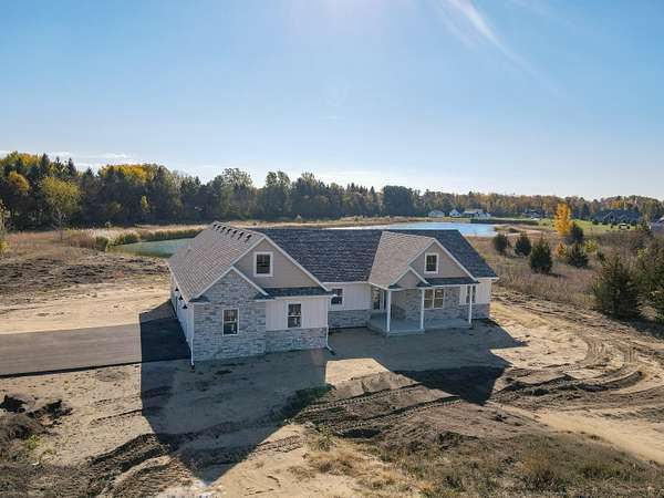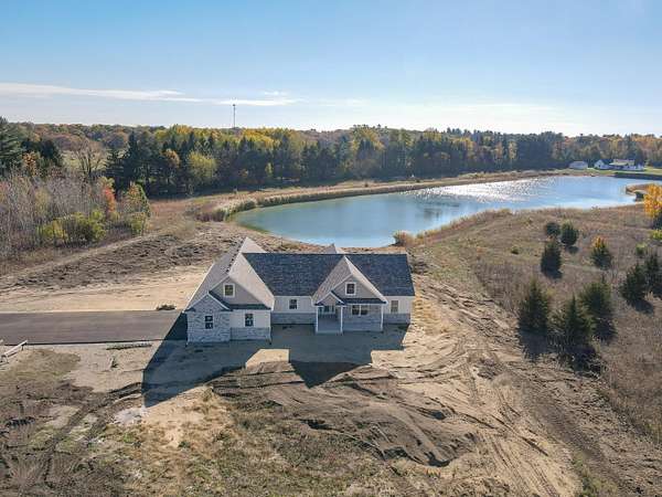 This stunning 4-bedroom, 2-bath home is just weeks away from completion and ready to impress! Built by one of the area's most respected builders, renowned for exceptional craftsmanship, quality finishes, and attention to every detail--this home truly stands out. Nestled on over 1.5 acres in a quiet cul-de-sac, this property offers peaceful, rural living with modern luxury. Enjoy breathtaking views of the stocked waterfront pond and mature trees from your walkout patio--the perfect spot for morning coffee. Step inside to find 9-foot ceilings throughout and a soaring 15-foot vaulted ceiling in the main living area, creating an open and airy feel. The primary suite features a luxurious custom tile walk-in shower, while the chef's kitchen boasts custom cabinetry, a huge walk-in pantry with extra storage, and high-end finishes throughout. No detail has been spared in this remarkable new build--combining style, quality, and the serene beauty of Water's Edge.
