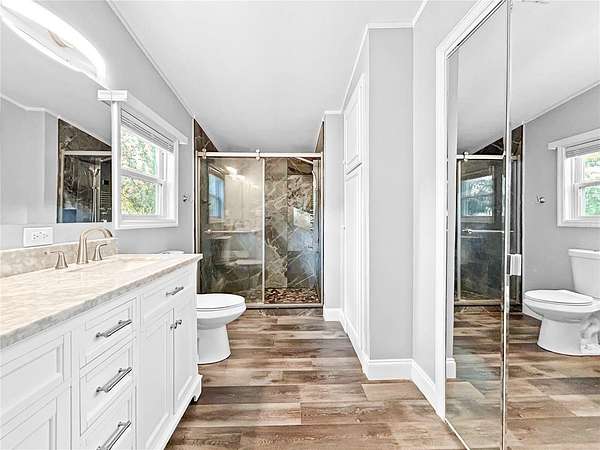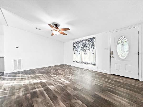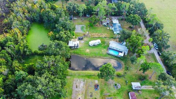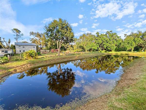 This exceptional, upgraded doublewide home offers cathedral ceilings with over 1500 square feet of living space on nearly 3 acres of land, featuring three bedrooms, two full bathrooms, a private pool, and access to a convenient fishing pond. The interior has been freshly painted and boasts a spacious living room, large family room, and an expansive kitchen designed for functionality and style. The kitchen is a highlight, equipped with black contemporary appliances, granite countertops, beautiful backsplash, stainless steel kitchen double sink, above-counter lighting, versatile pendant lights, useful center island, and ample room for a dining table. The primary bedroom is sizeable, travel through the modern barn door to reach the private ensuite bathroom, walk-in closet, granite countertops, double vanity and walk-in shower. The second bathroom includes a cultured marble countertop with shower in bathtub, while additional interior amenities include ceiling fans throughout, a water purifier, a water softener, indoor laundry with washer/dryer hookups, all replaced plumbing supply lines and all new ductwork throughout. The outside space presents a true oasis. The above-ground pool, which includes an attached deck and a spacious pool deck encircling it also includes a stylishly lit enclosed canopy lounge area with table and chairs to provide a feeling of quiet contentment. The property allows for convenient fishing from the sturdy deck into a nearby pond stocked with catfish, pacu, and other fish. The lot offers lots of open yard space with RV hookup, potential playground space , extra vehicle parking, an additional pond that's full of wildlife and land extends all the way back to Keene Rd. An expansive garage with a workshop and extra storage space, a substantial covered front porch, and delightful landscaping complete the exterior features. The zoning information indicates that this property allows for a new accessory dwelling unit (ADU) of up to 900 sq ft and does not place a limit on the number or size of sheds. The home is conveniently located near local attractions, including the Plant City Strawberry Festival, downtown Tampa, and a leisurely drive to the Tampa Bay Beaches. Be sure sure to schedule your appointment for a unique home showing today!