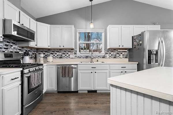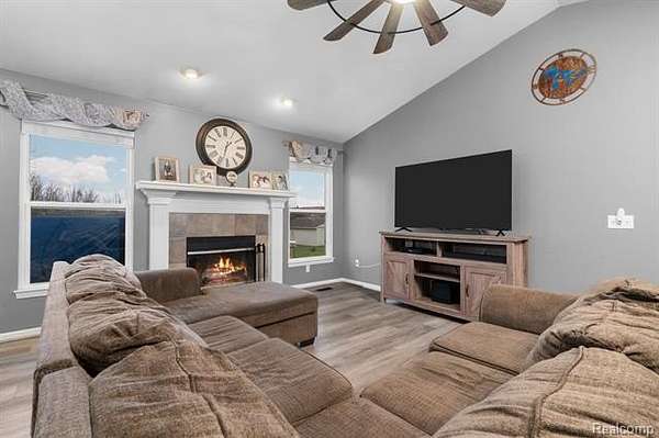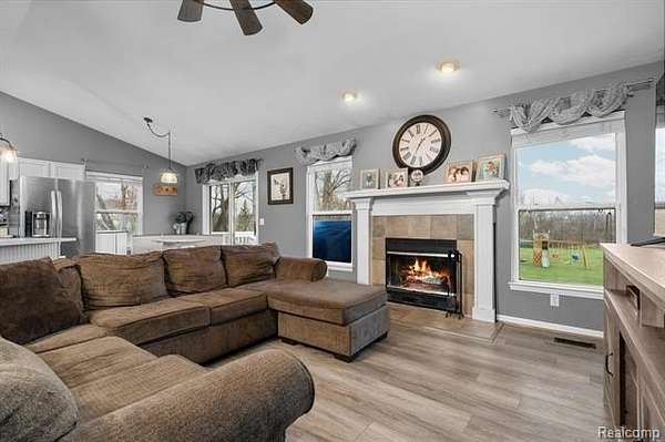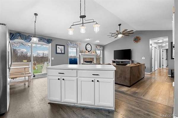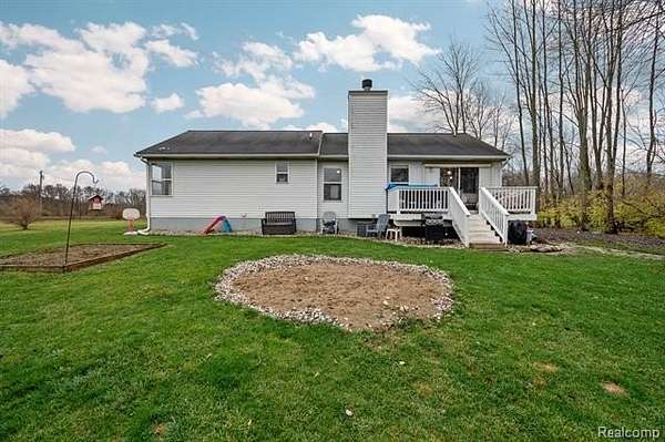 Enjoy peaceful country living in this beautiful 3-bedroom, 2-bath ranch home nestled on over 2 acres in scenic Marion Township. Step inside to an inviting open great room with soaring ceilings and a wood-burning fireplace, perfect for cozy evenings at home. The spacious kitchen features a large island, plenty of counter space, and newer appliances that stay with the sale. A walkout to the back deck makes outdoor entertaining and BBQs a breeze. The primary suite offers a private full bath and newer Luxury vinyl flooring runs throughout much of the home, offering durability and a modern style. Convenience of a first-floor laundry and an attached two-car garage. Enjoy the wide-open outdoor space ideal for gardening, recreation, or potential future outbuildings (per township approval and size requirements; buyers to verify with Marion Township). Call today with any questions and to schedule your private tour.