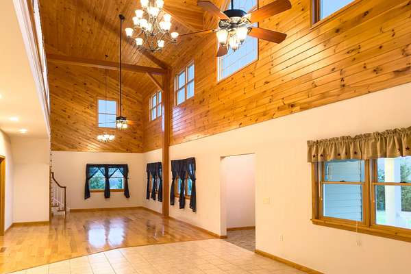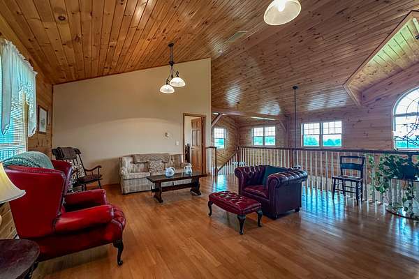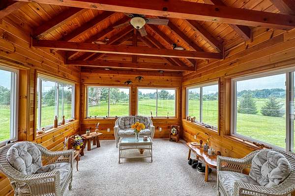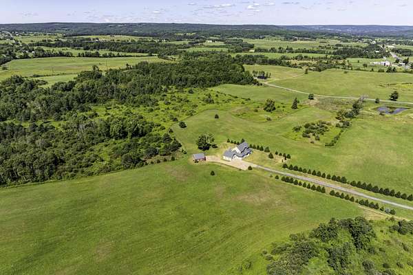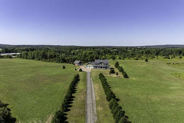 Discover this custom-built 3-bedroom, 2.5-bath colonial set on an impressive 114 acres of rolling fields, wooded acreage, and open meadows perfect for hay or recreation. Designed with both comfort and function in mind, the home features a spacious main-floor primary suite, a soaring great room with open loft, and a bright three-season sunroom with knotty pine walls that bring the outdoors in. Energy efficiency blends seamlessly with timeless design, offering geothermal heating and affordable Boonville power. Large windows and high ceilings flood the home with natural light. The full 1,635 sq. ft. unfinished basement offers endless expansion opportunities-whether as a game room, home theater, home office, or additional living space. Outdoors, enjoy a landscape of trails connecting to hunting ranges and nearby snowmobile routes, a picturesque small pond, and abundant wildlife. The property features both an attached two-car garage and an additional detached two-car garage, each with storage rooms above, ideal for seasonal gear, equipment, or workshop use. Relax on the covered front porch while taking in sweeping countryside views, or take advantage of thoughtful extras like the indoor dog-washing station. Offering incredible privacy, quiet surroundings, and beautiful vistas in every direction, this property is located just minutes from Boonville yet feels worlds away. Whether you envision a working farm, private homestead, or year-round retreat, this one-of-a-kind property delivers space, seclusion, and the enduring appeal of classic country living.