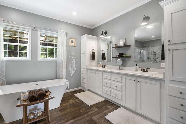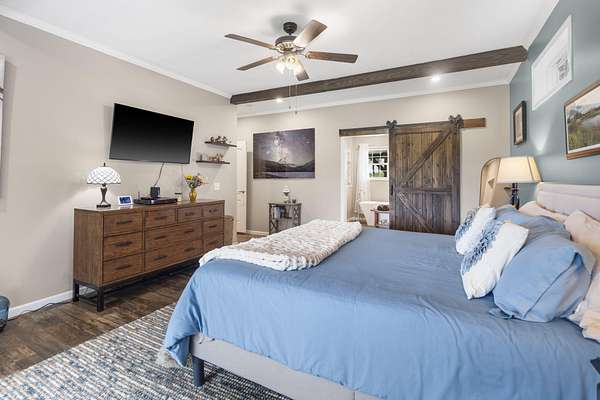 - Beamed Ceilings, Crown Molding, High Speed Internet, Jetted Tub, Quartz Counters, Satellite Internet