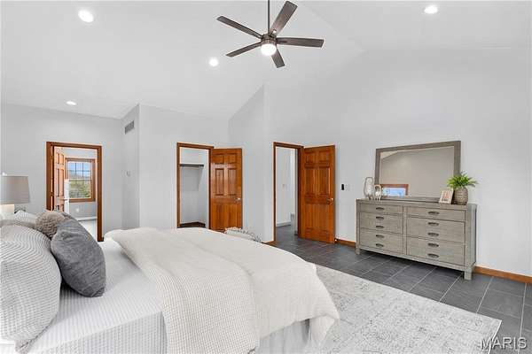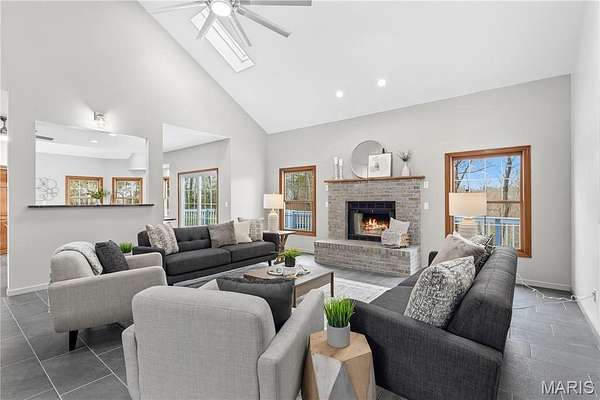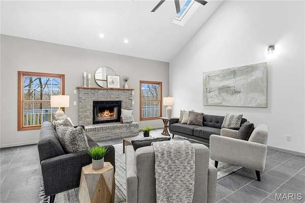 OPEN HOUSE: Saturday April 11th 12-3 and Sunday April 12th 12-2! Welcome home to this beautifully renovated 6 bedroom, 6 bathroom retreat nestled within nearly 3 acres of mature, wooded privacy. From the moment you arrive, the warm and welcoming open layout draws you in with soaring vaulted ceilings with exposed wood beams, rich warm-toned trim, and slate-toned tile floors flowing throughout. Two fireplaces anchor the living spaces, creating that cozy, come-as-you-are feeling that makes this home truly special. The lot features about 600' of frontage to the pond, offering beautiful view during your morning coffee to wrapping up the day watching the sunset over the water. The state-of-the-art kitchen is a showstopper, featuring dark granite countertops, a herringbone tile backsplash, stainless steel appliances, a large island with seating, and a charming breakfast nook giving you everything you need to cook, gather, and entertain. Oversized bedrooms offer generous space and comfort throughout, while the stunning primary suite serves as its own private escape with vaulted ceilings, French doors to the rear deck, a marble-look soaking tub, and a frameless glass shower. First floor laundry and 2 new HVAC systems and new furnace keep everyday living effortless. Head downstairs to the fully finished walkout basement, complete with a full wet bar, rec room, family room, a private bedroom and full bath. All opening directly to your finished backyard and sparkling inground pool. The main floor wraps to a full walk-around deck across the entire rear of the home, where wooded views and fresh air make every morning feel like a getaway. Fullfilling the car lovers dream, the detach garage is built to match the home, featuring a built in car lift, skylights, gables, a wood burning heater, eletric, and a concrete foundation. Accommodating up to 7 cars, the opportunities are endless with this rare find just steps away from the house. This home beautifully blends timeless luxury with a warm countryside appeal that simply cannot be replicated. And HOA fee is voluntary for road dues.