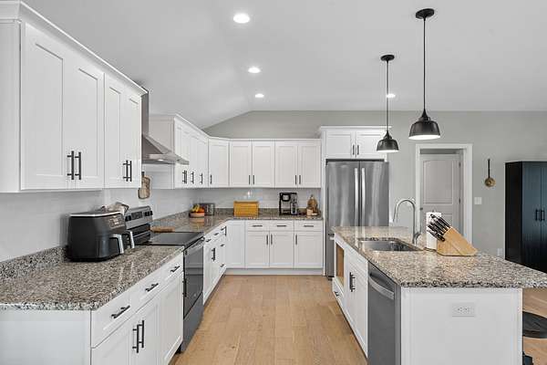 - Dishwasher, Electric Range, Microwave, Oven, Refrigerator, Stainless Steel Appliance(s)