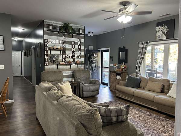 This well kept and attractive 7.39 acre farm is perfect the property, tucked back into the hill, located very close to the lake, it has a creek, with water in it year round, a pond, tons of wildlife, a garden with a very high fence to keep deer out, an 8 x 80 covered front porch, also a patio and grilling area and an above ground pool with a deck. Inside the house you will find 5 bedrooms, 2 bathroom, a large panty, large laundry room, a mud room, the primary suite has 2 large, walk-in closets, a tiled walk-in shower, the house has a split floor plan. The living room, kitchen and dining are all open. Don't miss the 30 x 30 shop with a work space, 2 garage doors and steps going up to storage. There is also a carport!