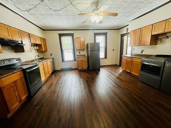 Immaculate, turnkey two-family home-move-in ready inside and out! Each unit features a spacious, updated eat-in kitchen, with the lower unit showcasing a stunning tin ceiling. Both apartments offer generous living room/dining room combinations, a den/office on each floor, 3 bedrooms, and beautifully updated bathrooms. Additional highlights include laundry hookups in each apartment (washers and dryer included), new laminate flooring throughout both flats, enclosed rear porches, open front porches, and separate heat and electric. The property also offers a newer two-car garage with storage, a large, clean walk-up attic for additional storage, and a spacious 88' x 219' backyard with a shed. This home has been meticulously maintained and is truly pristine! Schedule your showing today, you will not be disappointed.