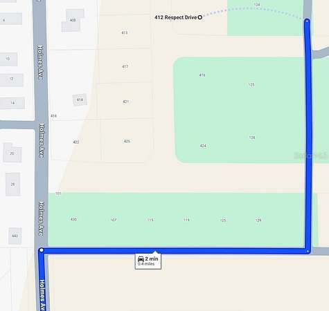 Arrive at 412 Respect Dr, on your right.