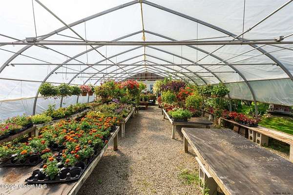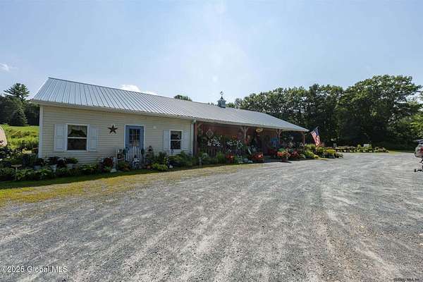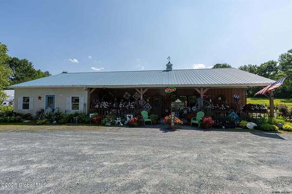 The property boasts magnificent views along with a 36X70 foot pole-barn, two green houses, professionally landscaped Koi pond w/ waterscapes and a finished metal building that can be used for a turn-key retail operation along well traveled Route 7, offices or converted for use as a horse barn. There is also the last allowed Billboard in Hoosick that offers an extra income source to the owner. Home was built in 1994, conveniently located just 20 minutes from Bennington VT & Williamstown Mass. Less than an hour from Albany, New York, Manchester, Vermont and the world class fun and entertainment waiting in downtown Saratoga Springs. This residence has location, space, structures & excess property to fulfill any wants & desires that its next imaginative owner wishes to enjoy.