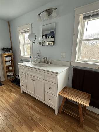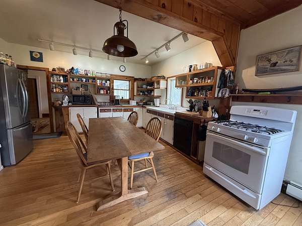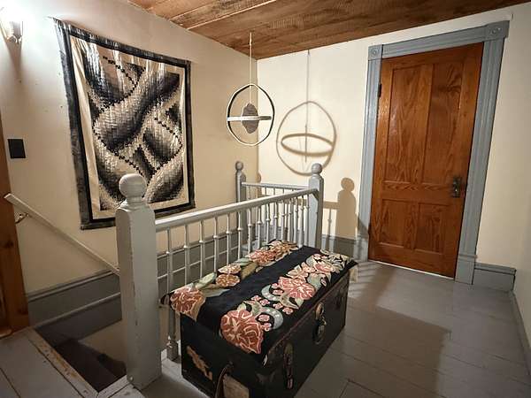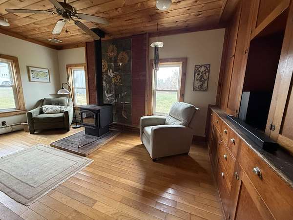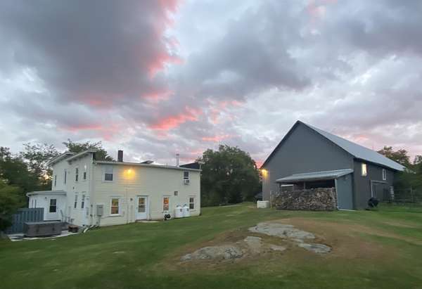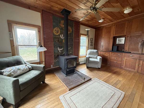 Built in 1912, this charming Four-Square home offers nearly 3,000 square feet of living space and timeless appeal. The main floor features a spacious eat-in kitchen with a Quadra Fire wood-burning stove, a studio, full bath, half bath with laundry, double living room, and a den—providing flexible spaces for work, relaxation, and entertaining. Upstairs, the generous master suite is complemented by three additional bedrooms located separately from the primary area, along with a full bath featuring a convenient stackable washer and dryer. Hardwood and wide plank flooring add warmth and character throughout much of the home. Set on 77 picturesque acres with approximately 40 acres of pasture and 35 acres of meadow, this property offers endless opportunities for farming, recreation, or simply enjoying the peace and beauty of the countryside.The property also includes a 300 sq. ft. private office with hardwood flooring, heated by a Monitor heater—perfect for working from home or creative pursuits. A charming guest house offers a comfortable living room, bedroom, and half bath, along with an outdoor shower. It features its own 500-gallon plastic septic system and point-pounded well, and is heated by a Rinnai heater. A 30’ x 72’ 1.5-story barn provides three bays, a 13’ x 14’ heated workshop with L-shaped workbenches, and a spacious 30’ x 30’ overhead storage area. Outdoor amenities include a 2007 Sundance 18’ x 32’ above-ground pool with Trex decking and chain-link fencing, a 10’ x 16’ pool house, hot tub, and 8’ x 12’ sauna. A potting shed, perennial and herb gardens, as well as raspberry and currant bushes, complete the beautifully maintained grounds. Included with the sale are 2 acres located directly across the street, featuring a 576 sq. ft. ranch-style structure. The building offers a metal roof and partial siding and has been completely gutted—ready to finish to your liking. Ideal for a guest cottage, studio, or potential VRBO rental—the possibilities are endless!