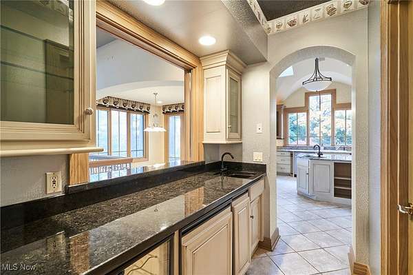 Discover this stunning, one-of-a-kind custom home in the quiet, gated community of Glenmoor Country Club. Located in Canton, this prestigious development boasts some of the most luxurious & beautiful homes in Northeast Ohio, weaving in & out of the private Jack Nicklaus Signature designed golf course. Designed by Tony Luketic & constructed by Gaetano Contractors, the Transitional-style home sits privately on 1.74 acres, near the #9 tee box & #10 green. Step into the grand, two-story foyer w striking black marble flooring, elegant formal dining room & massive Great Room w soaring ceilings & wall of windows, offering panoramic views of the golf course. Spacious & well-appointed chef's kitchen, perfect for entertaining, feats large island, granite counters, Thermador fridge, double oven, cooktop w warming drawer, dual sinks, abundant storage & walk in pantry w wet bar & bev fridge. Relax in the spacious first floor owner's suite, complete w dual WIC's w ample space & storage. A luxurious primary bathroom w Jacuzzi tub, tiled shower w bench, two water closets & dual vanities, creating a spa-like retreat. Other notable first floor highlights inc. office w built-in's, laundry w built-in's, full & half baths, & family room w entertainment wall. Second floor feats two spacious addl bedrooms w WIC's & ensuites, as well as a hidden surprise! Lower level is an entertainer's dream complete w 2nd kitchen, rec space, workout studio, full bath w steam shower, cedar closet & a wine room w storage for over 1,000 bottles. Exterior feats covered paver patio, hot tub & upd (25) pond/waterfall mechanicals & plants. Other updates inc: new carpet throughout (25), both water tanks (25), dishwasher (23), roof (22). Located within the award winning Jackson LSD, consistently ranked among Ohio's best. Don't miss your opportunity to make this exceptional Glenmoor home yours today! Contact listing agent for a private tour & experience luxury living at its finest!