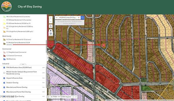 Prime Multi-Family Development Opportunity in Eloy! Unlock the potential of this large level lot zoned R-3 (Multiple Family Residential) -- a rare chance for investors or builders looking to capitalize on Eloy's growing housing demand. This property allows for multi-family development with the potential for up to 12 units, while still permitting a single-family residence if desired. Major utilities are already within reach: electricity and sewer are on the property (connection required), and water is located less than 350 feet away, helping simplify the path toward development. The parcel is flat, buildable, and ready for the permitting process, making it an attractive option for developers seeking their next small apartment, townhome, or build-to-rent project. With flexible zoning and strong upside, this property presents an excellent opportunity to create income-producing housing in a growing Arizona market. Buyer and buyer's agent to verify all facts, zoning, utilities, and development potential with the City of Eloy.
