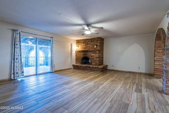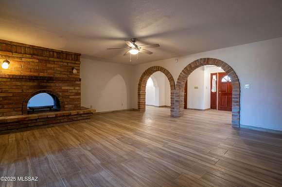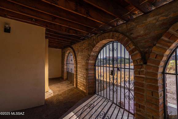 This spacious Mission-style home offers 4 generous bedrooms plus a den--providing plenty of space for ranch living with rural privacy, yet still close to city amenities. You'll love the old-world charm, with red brick arches, a double-sided fireplace connecting the living and dining rooms, and enclosed front and rear patios for relaxing in the shade. Enjoy 3 updated bathrooms, including a sunken soaking tub in the primary suite. The extended-length 2-car garage includes extra space for projects. With 2,911 sq. ft., newer flooring in the main living areas, two newer 5-ton AC units, and much more. Set on nearly 5 acres of horse property with its own private well--this is ranch living at its finest. Schedule your showing today!