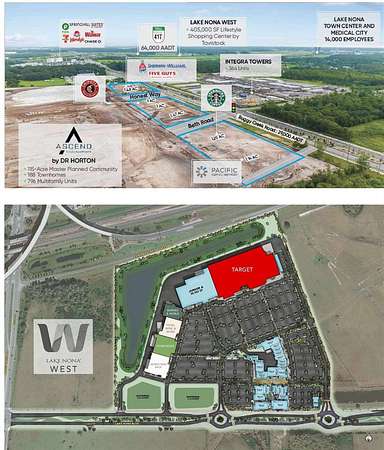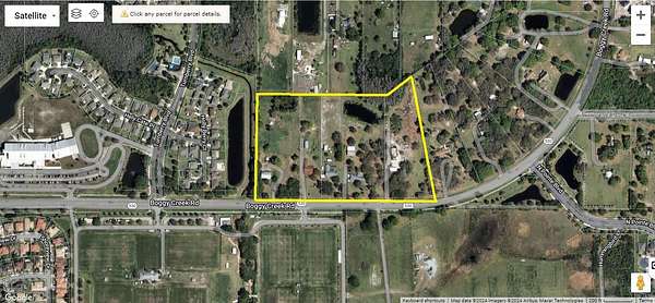 5-15 acres on The Boggy Creek Road corridor which is South Orlando's best undeveloped opportunity. Surrounded by affluent communities, minutes from the Airport, Medical City and across from a very busy Austin Tindal Park , makes this location exceptional. The demographics are right with 4 already built 300+ unit, luxury rental communites within minutes of the property. To further enhance its prime location, new construction of 364 luxury rentals by Integra Towers and 188 Townhomes & 796 Multifamily units being built by Dr Horton is underway. The new Lake Nona West, a 405,000 SF Shopping Center with a Target, Nordstrom Rack and Barnes & Noble will be minutes from the property. Starbucks and Chilepote have also committed to the area and are under construction. Proximity to theme parks, golf and a short drive to the beach are an added plus. Call today for more information. Assemblage of 3 other owners is in place to complete 15 acres. Value in land not building. All measurements are estimated buyer is responsible to confirm accuracy and perform due diligence.