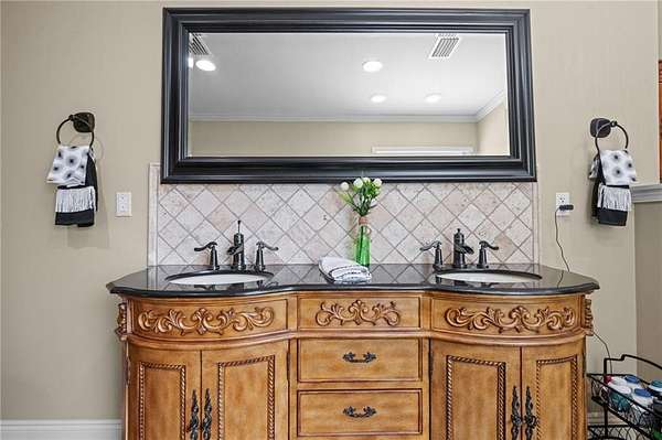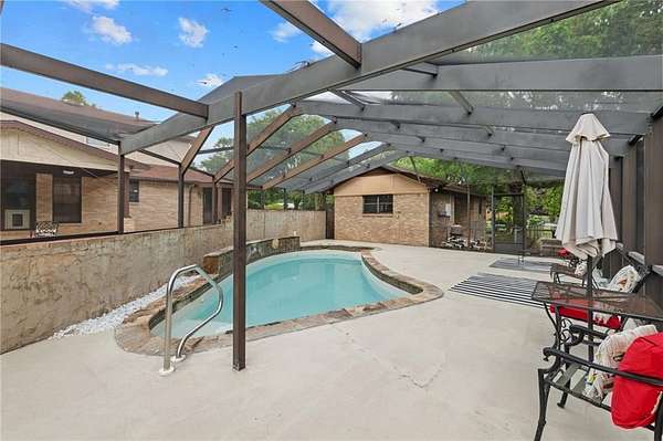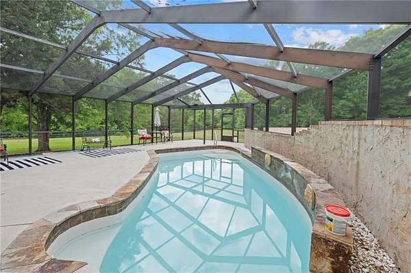 Tudor-style home situated on just over 2.5 acres in a convenient Mobile location?close to parks, shopping, schools, and restaurants. Key updates include a roof replaced between 2019?2020, plus an HVAC system and tankless water heater updated within the last five years. Tile and hardwood flooring run throughout the main living areas. The split-level floor plan offers flexibility and separation of space. Just off the entry, a downstairs flex room offers the perfect space for a home office, playroom, or den. This level also includes a half bath and a spacious laundry room. The primary suite includes two bathrooms and two custom walk-in closets. The main ensuite features a whirlpool tub, double vanity with granite countertops, and a walk-in tiled shower. The kitchen features abundant cabinetry, ample counter space, stainless steel appliances, a center island, and a built-in butler?s pantry. Expanded rear windows bring in natural light, creating a bright and inviting space. Upstairs includes two generously sized bedrooms with new carpet and a full bathroom. Outdoor features include a large covered patio leading to a screened indoor pool, a fully fenced backyard, and additional storage with two rooms under the carport and a storage shed (to remain). Schedule your showing today.