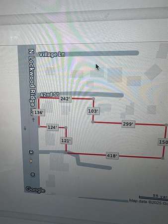 On the corner of Lockwood Ridge Road and 42nd Street. 42nd Street is a gravel road and the subject property is immediately to the right of this (South West) intersection, with two single family homes adjacent to one another (part of this property) and then an open area to drive back and see the rest of the site, which is adjacent to the Fire Department).