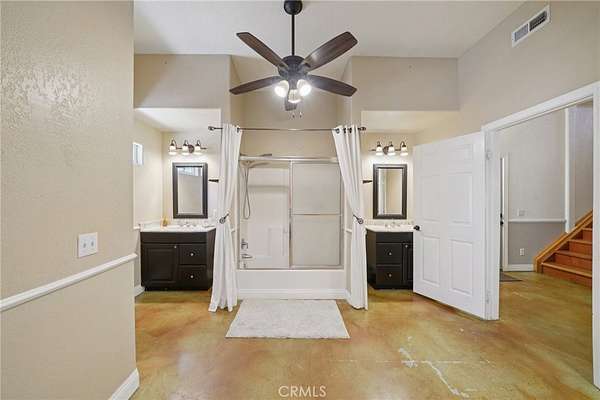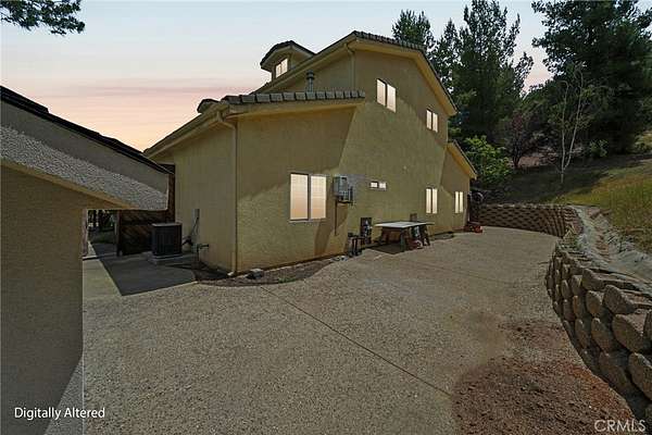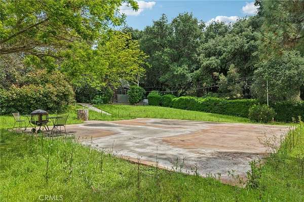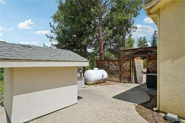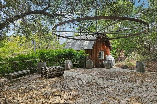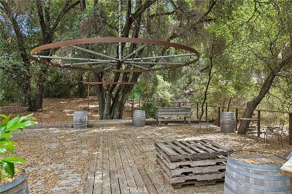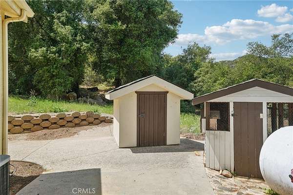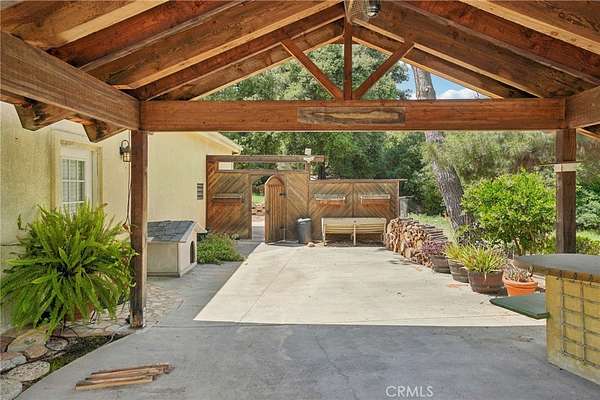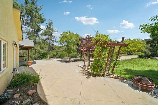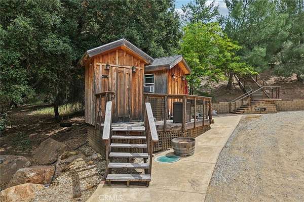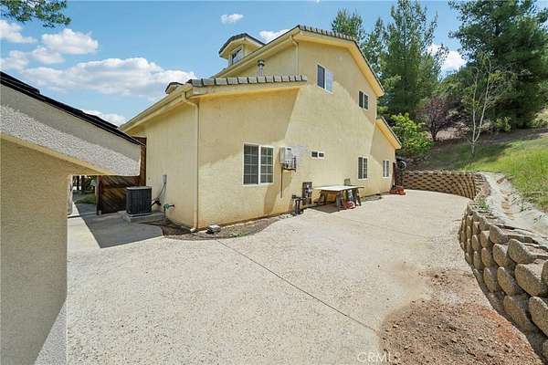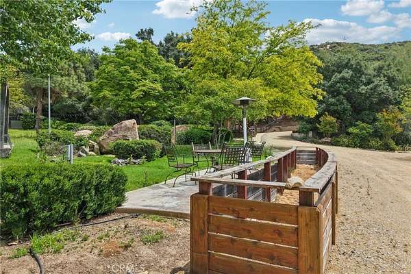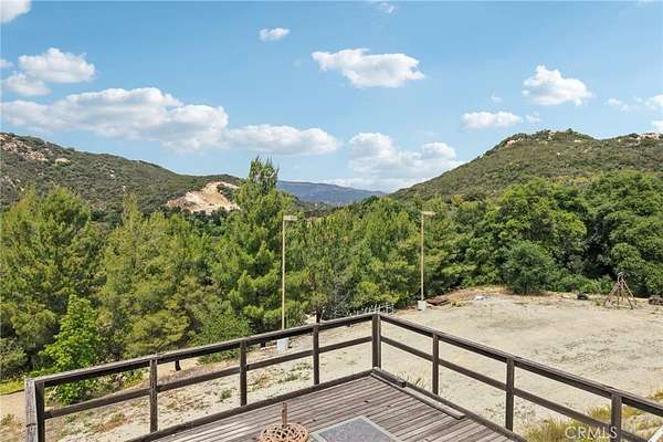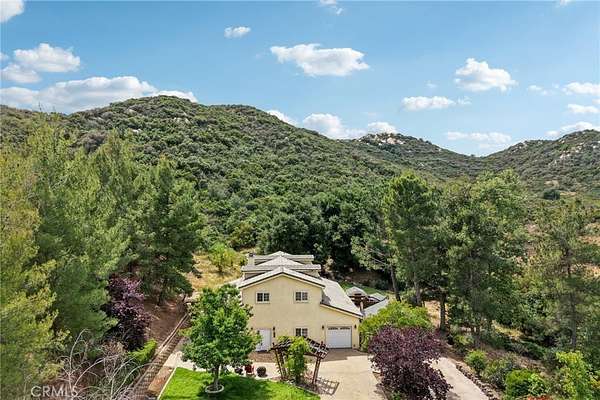 Seclusion and privacy is unavoidable when you turn into the driveway from Hacienda Dr as the paved road to the house is lined with countless trees and serenity. Absolutely one of a kind 4 bedroom, 2 bathroom, two story La Cresta home located in Murrieta with RV access and tandem garage. This 2256 sqft home has stained concrete, tile flooring and ceiling fans throughout the house with gorgeous views and endless options for entertainment sitting on nearly five acres.The entry opens into a long formal entry, and to the right you will find the first bedroom with a ceiling fan and a generous sized sliding door closet.The second bedroom is quite large and just at the end of the entry, with sliding closet doors and a ceiling fan as well. Plus, this room connects to the downstairs bathroom, which features a separate double sink with quartz countertops, an enclosed shower and tub combo, and a private door for the toilet. The entry also connects to a long and spacious workshop that can easily be converted into a fifth bedroom or office, or kept for storage, and a large garage that can fit up to 3 cars. The kitchen is located upstairs and features beautiful wood cabinets and granite countertops, with breakfast counter seating for five. The kitchen is highlighted by recessed lighting, with a stainless steel microwave, 4-burner stove, dishwasher, and double sink with great views. The kitchen opens to the family room that features a stunning brick wood-burning fireplace, recessed lighting, and a ceiling fan, perfect for a cozy evening. The primary bedroom is just next to the kitchen and has mirrored sliding doors and a master bath that has almost the same layout and features as the downstairs bathroom. The remaining bedroom is a good size, with plenty of space and mirrored sliding closet doors as well. The patio is an entertainer’s dream that wraps around the home, with stunning mountain views, a big deck with bench seating, and a large concrete gathering area. This home also has its own private skate park, picnic area with wood benches, and an outdoor kitchen with a grill, brick wood barbecue oven, overflow parking, and outside restrooms for added convenience. There's also a deck patio next to the huge shed, with bar and outdoor bathrooms perfect for events or parties, as well as a raised wood deck with sitting area to take in the panoramic views and so much more! This home is surrounded by many other horse ranches, farms, and trails, and has access to major freeways.