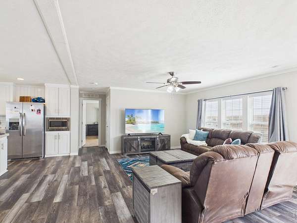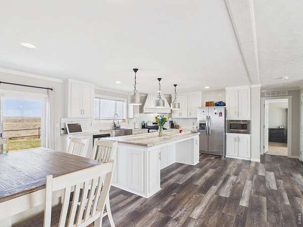 Welcome to this well maintained 4-bed, 2-bath country home on 35.72 acres, perfectly set up for animals and outdoor living. The property features fully fenced metal corrals, a pasture suitable for horses or a few cows, and dedicated corral pens with shelters for goats, sheep, or other small livestock. A sand riding area is already established (unfenced), and the yard is fully fenced with sod! Inside, the open-concept living room, kitchen, and dining area create an inviting space for everyday life and entertaining. The spacious primary suite includes a stunning master bathroom you'll want to see in person; the second bath is conveniently located near the laundry and back door for easy access. Durable vinyl flooring runs throughout the home for low-maintenance living.A 1,220 sq ft insulated and heated shop provides excellent workspace or storage. Meticulously cared for and thoughtfully upgraded, this property is a rare slice of rural heaven - don't miss your chance to call it home.