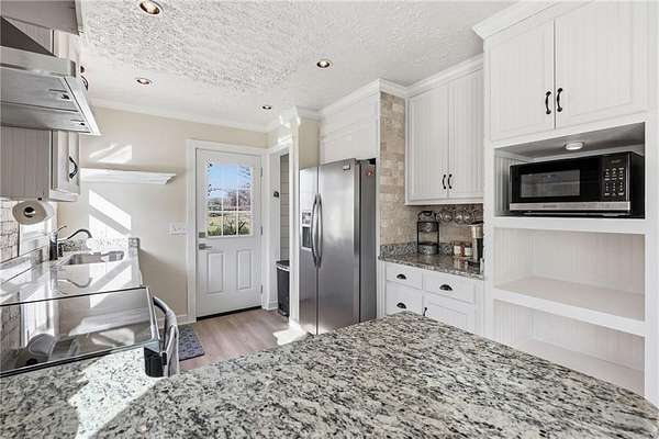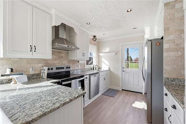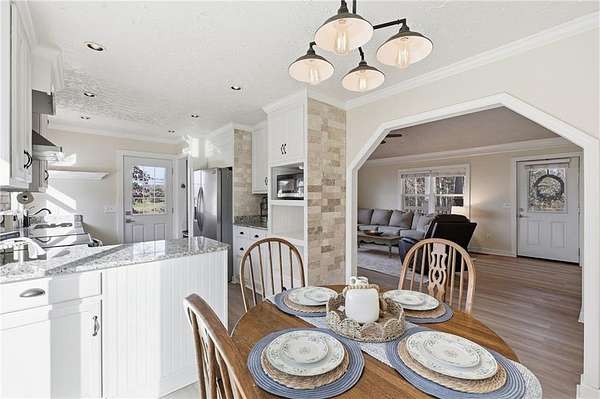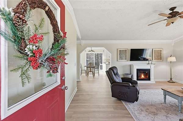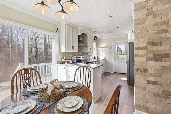 Welcome home to 4123 Leach Road in Gainesville, GA -- a beautifully renovated 3-bedroom, 2-bath ranch set in a calm, serene, and truly picturesque setting. From the moment you arrive, the covered front porch invites you to slow down and take in the peaceful surroundings. Inside, you'll find thoughtful updates throughout, including a bright, refreshed kitchen featuring granite countertops and stainless-steel appliances, perfectly blending modern convenience with cozy country charm. The open, comfortable layout offers easy one-level living and spaces that feel both welcoming and functional. Outside, mature trees and wide-open views create a rural, park-like atmosphere that's hard to find -- ideal for enjoying quiet mornings, relaxing evenings, and the simple beauty of nature. This property offers the best of both worlds: a cozy country feel with the convenience of Gainesville just a short drive away. If you're looking for a home that feels calm, serene, and surrounded by natural beauty, this one is a must-see.