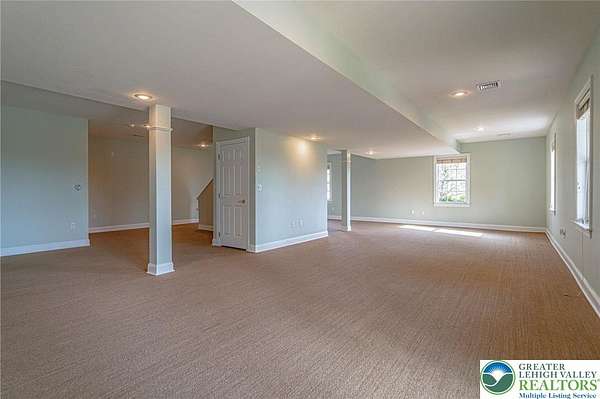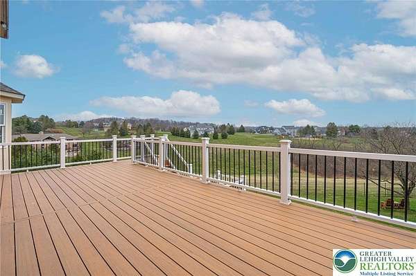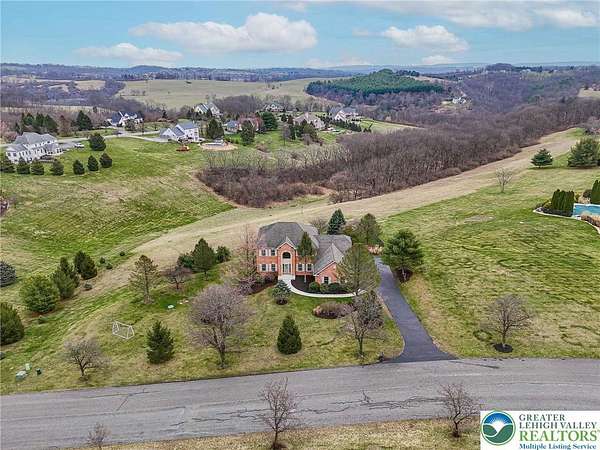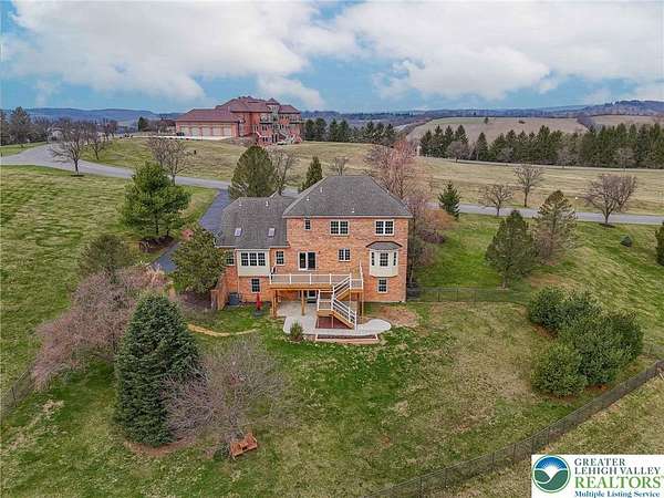 If your commute includes driving alongside meandering creeks and streams, passing historic homes, antique barns, and covered bridges while enjoying some of the most scenic roads in the Lehigh Valley, it may turn into something to look forward to! This stunning property is more than just a home - it's a retreat, a quiet place to put the phones away and just be present with family and friends. Set on 3 acres in The Manor, this home offers thoughtfully designed and comfortable spaces with a flexible floorplan that can accommodate multi-generational living. A grand 2-story foyer with arched window welcomes you inside. To the right, French doors lead to a cozy office with sweeping views of the front lawn. Across the foyer, a formal living room with hardwood floors, crown molding, and decorative pillars opens seamlessly to a dining room with wainscoting, bay window, and a nature-inspired wallpaper with accents of matte gold. The open-concept, eat-in kitchen and family room with vaulted ceiling combine to create the heart of this home. With unobstructed eastern views, morning sunlight pours into these spaces through windows, doors, and skylights. The kitchen features an island with seating, space for table dining, wood cabinetry, granite countertops, double ovens, pantry, and access to a large deck overlooking the property. The family room is anchored by a low-maintenance propane fireplace with fieldstone surround, hardwood floor, and bay window. A powder room and a laundry room with utility sink and closet complete the first floor. Upstairs, you'll find a primary suite with large bedroom, walk-in closet, and oversized bathroom with a 21' wall of storage closets. Down the hall, the second bedroom has an ensuite bathroom and the two remaining bedrooms share a hall bathroom. The lower level features walk-out access to a private patio, 4 full-size windows, a full bathroom, storage closet, and a large unfinished storage room. Outside, you'll find mature landscaping, a large fenced-in area, and beautiful views that stretch for miles. Come see this remarkable home and all it has to offer!