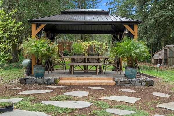 OFF GRID ELEGANCE - Spectacular, self sustainable, secluded riverfront property. Mature orchard and gardens abundant with blueberries, heirloom blackberries, raspberries and strawberries & even a pond! Culinary and medicinal herbs growing throughout the property. Come see this Safe haven for you and your loved ones. Go to offgridelegance.com for the full story! Live, work, and play with family and friend son your own private beach on the cleanest river in America! Large, self reliant compound on 7 acres in pristine forest/river location 4bedroom, 2 bath house, plus office, with Chefs kitchen, 2 loft bedrooms with expansive views. Currently a working medicinal herb farm specializing in a highly prized and profitable crop of gynostemma a.k.a jiao gu lansality, the immortality from Native to semi tropical regions. Current metal roof on house Auxiliary structures: Custom cedar commercial greenhouse for year round food production - 12' x16' Outdoor spa area with Finnish wood burning sauna, clawfoot bathtub, outside shower, and water flush compost toilet Charming,weatherized, self contained studio/office with water and power Cedar duplex building, weatherized, within a large screened-in porcharea. Wired and plumbed (on-demand hot water heater) Custom, large, Port Orford cedar chicken coop, run, and storage closet forfeed metal 15 x 20 barn/storage building for food/equipment, etc. All fruit trees, fruiting plants and shrubs, food, flowers and herbs have been grown 100% organically. New infrastructure: 2 solar panel towers - New inverter - Outback New diesel generator- 10 KW Kubota for additional power when needed New solar batteries - 16 New septic Additional details: 4 - 2500 gallon water storage tanks for servicing house and garden Raised beds for growing food Mature orchard - trees include Rainier and Bing cherries, 4 frost and white peach trees, 2 plum, 6 apple, 2 pear, raspberries, thornless blackberries, 6 varieties of grapes, 3 fig trees, Mission olive, variety of citrus,and blueberries. Additional edible landscaping includes a multitude of strawberries, perennial culinary herbs, combined with medicinal herbs. Sellers will familiarize new owners with all systems before close of sale.