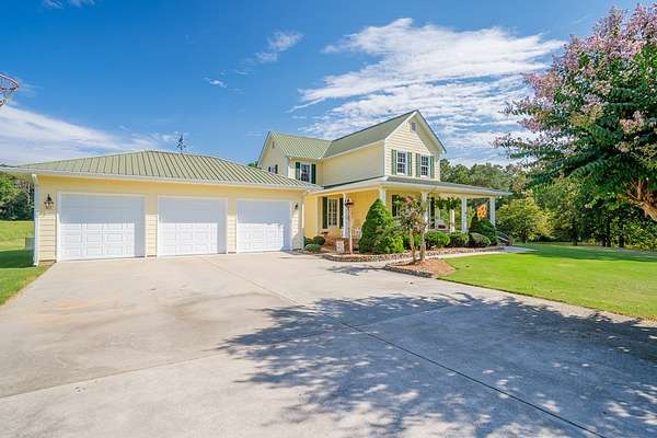 Est $5,073/moEscape to the country in this gorgeous custom-built farmhouse on 24 serene acres! This home greets you with a classic rocking chair front porch. Inside, you'll love the warmth of hardwood floors throughout, a cozy den, and a spacious eat-in kitchen with a breakfast bar plus a separate formal dining room and living room. The main-level primary suite offers convenience and privacy, while upstairs features three additional bedrooms and two bathrooms. The full basement adds incredible living space with its own kitchen and full bathroom,. Outdoors, enjoy a beautiful pond, swimming pool, large workshop, and a 3-car garage for all your needs. Blending timeless farmhouse charm with modern amenities, this property is one-of-a-kind.