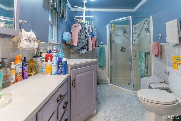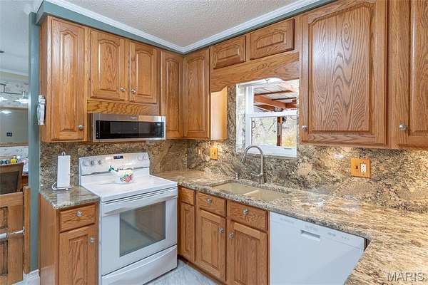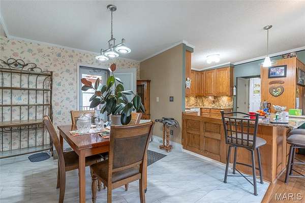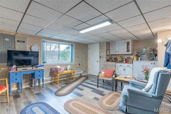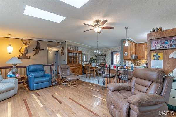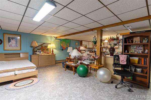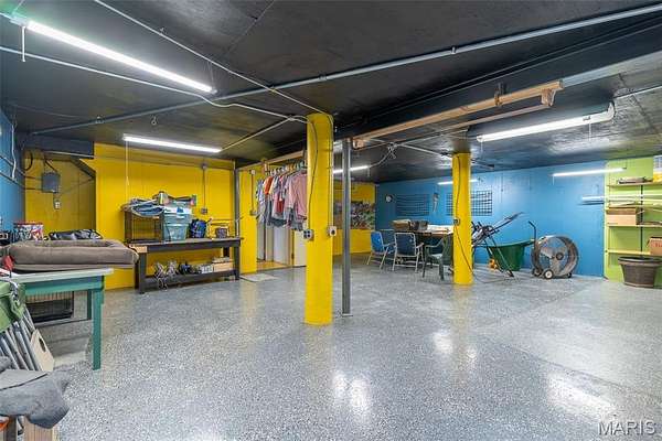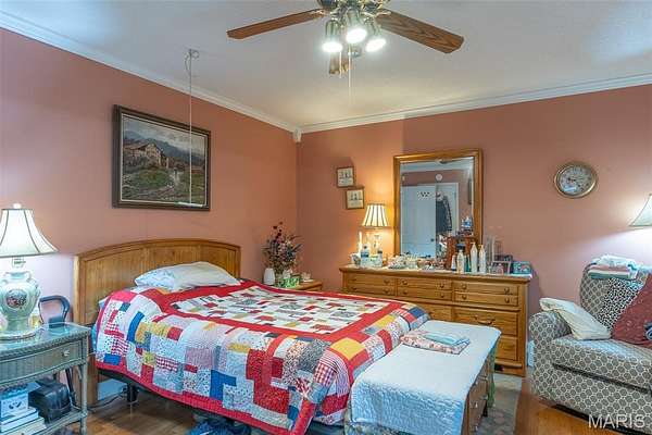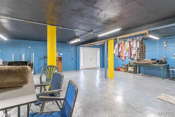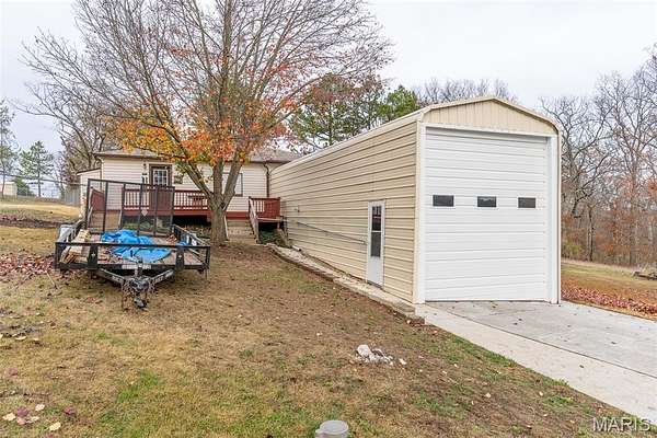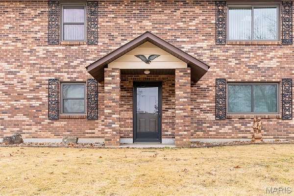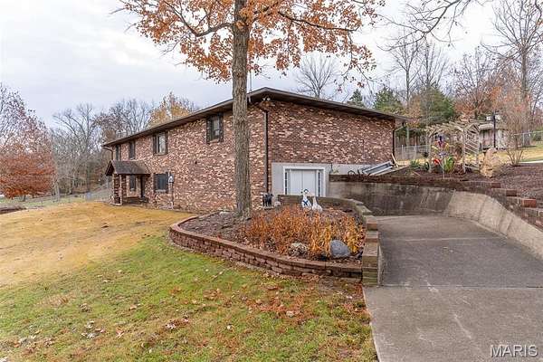 This all brick home is a rare find on almost 4 acres on the outskirts of downtown De Soto. This property comes with so many extra touches. Beautiful wood floors, Open concept dining room, kitchen and living room with cozy electric fireplace that will remain and 2 skylights. All the charm is here with crown molding, built in shelves and so much personal love put in from these 1 time owners. Nice size 3 bedrooms/3 full bathrooms and Everything you need is on the main floor. Laundry in the garage plus 2 more laundry areas. You can access this main level from the back and never go up a step. However, more coziness awaits downstairs if you must go. One complete apartment with a full kitchen and laundry area is finished and ready to move in. Another 2nd room currently used for a dog grooming station and another laundry area is also in the basement and could easily be turned into another apartment. And that is not all! Another space accessible from downstairs has a walk out door to the side entrance and stairs leading up to the main floor garage is in this area as well. This space is currently used for storage but could have several possible uses. No lack of storage in this house. And outside there is more space. Fenced in yard, with a concrete garden area and a she shed. 3 large outbuildings with room for at least 4 cars total. Heated and with water these outbuildings are a must see! Whatever your hobby is you have a place to make your own along with plenty of outdoor equipment storage. Outbuilding bonus: Chain Hoist, air compressor (will remain) welder (will not remain). You will need to buy more tools and toys to fill up this space. Come and see for yourself. More bonus features: Generator installed, newer windows, roof, 6 panel doors, central vac. (baseboards are for 2nd heat source it has central electric).