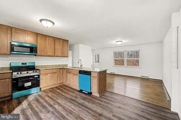 - Breakfast Area, Combination Kitchen/Dining, Country Kitchen, Eat-In Kitchen, Entry Level Bedroom, Open Floor Plan, Pantry, Table Space Kitchen, Wood Floors, Wood Stove