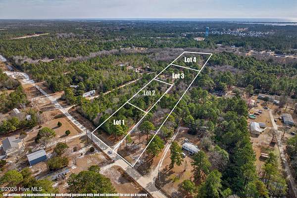From 17, head North towards Surf City. Turn right at LOWES, then turn left a mile down the road by the power lines on Electric Lane. Buds land is down on the right. The driveway goes right through the middle of the property.