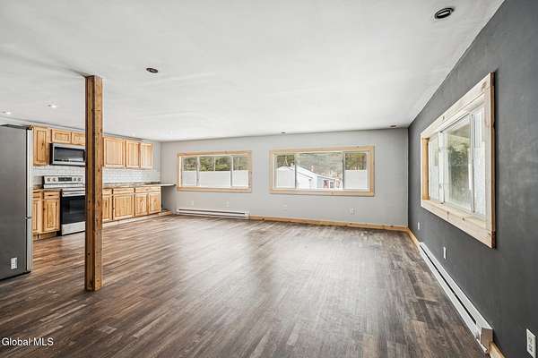 Looking for a brand-new home without the high price tag? This beautifully renovated 3-bedroom home with an office offers just that! Situated on 1.75 acres, this property combines modern upgrades with the peace and space of country living Step inside to a large great room filled with natural light from exceptionally large windows, giving you the feeling of being outdoors while inside perfect for entertaining or relaxing. The home features 3 generously sized bedrooms and a dedicated office, making working from home a breeze.With 1.5 bathrooms, including a convenient half-bath/laundry area with exterior access, functionality meets style. Every detail has been updated, offering brand-new systems, finishes, and fixtures throughout.Outdoor living has been maximized: enjoy the extended covered front porch running the length of the home, a covered rear area perfect for grilling in any weather, and a detached 2-car garage.The seller's hard work on this renovation is nearly complete, offering you the feel of a brand-new home without the brand-new price. Located within 30 minutes of skiing and abundant outdoor activities, and just a short drive to the Village of Stamford, this home offers the perfect blend of country living and convenience.