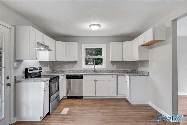 Est $1,071/moNice, remodeled home on large, 2 acre wooded lot in Cullman. New LVP flooring and new paint throughout. New HVAC and new windows. Brand new kitchen with new cabinets, counters and appliances and plumbing fixtures. Both bathrooms are also brand new. Nice covered deck overlooks the backyard and property as it begins to slope down into the mature hardwoods behind the home.