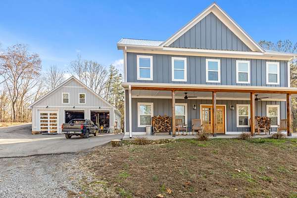 Set on nearly 5.5 acres of flat, usable land, this custom semi-barndominium home offers 5 bedrooms, 4.5 baths, and 3,360 square feet of thoughtfully designed living space in the main home. The main level features open living areas and quality finishes throughout.