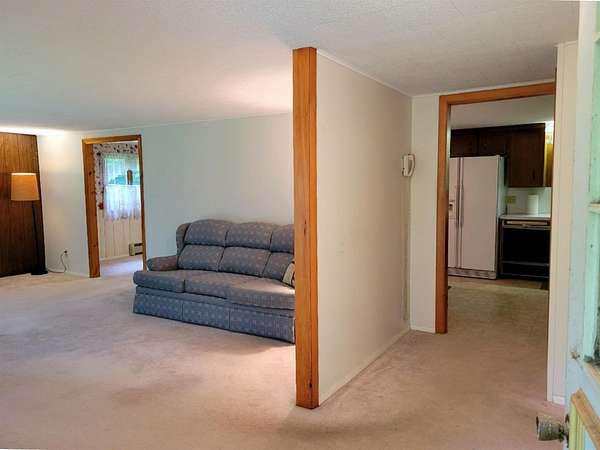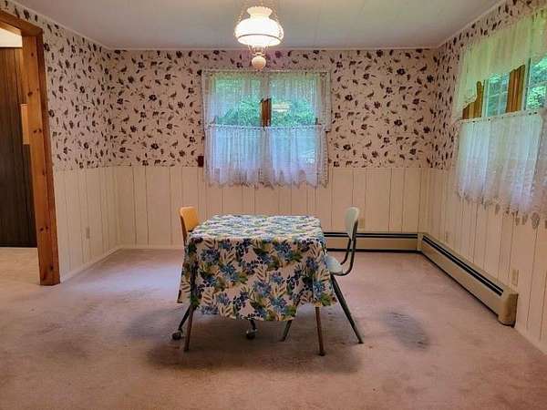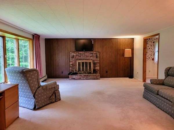 Scenic North Country Home with Solid Bones & Vintage Charm! Welcome to this well-loved, one-owner home nestled along a scenic route in the heart of New Hampshire's White Mountains region. Located just north of Lancaster in the quiet town of Groveton, this 3-bedroom, 1.5-bath home was thoughtfully built in 1972 with long-term comfort and energy savings in mind. Set on a partially wooded lot, the home offers 1,768 sq. ft. of finished living space and an additional 1,738 sq. ft. in the walk-out basement, complete with a spacious two-car garage under. Original cherry hardwood cabinets remain in excellent condition, reflecting the home's solid craftsmanship. The main level features an eat-in kitchen with access to the back deck, dining room, a spacious living room with a wood burning fireplace, and three bedrooms. The fourth room, currently set up as a laundry/sewing/office space with washer/dryer hookups and a sink, could easily be converted back into a bedroom if desired. The primary bedroom has a half bath and walk-in closet, and both bathrooms feature original finishes. While the home could benefit from cosmetic updates, such as carpet replacement, it offers incredible storage, strong bones, and great potential to update at your own pace. Additional highlights, Snowmobile trails across the street, an ADT alarm system (installed and functional), kitchen appliances, and a chest freezer. If you're looking year-round residence, with strong fundamentals, this home has it all.